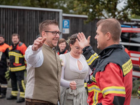 Es war ein wunderschöner Tag voller Freude, Lachen und unvergesslicher Momente. Ein Spalier, bestehend aus Angehörigen, Freunden, Kollegen, Kameraden der Ortsteilwehren und unserer Wehr, begrüßte das frisch vermählte Paar vor dem Rathaus in Bad Abbach. Wir sind so stolz, Teil dieses besonderen Moments gewesen zu sein, und wünschen dem frisch vermählten Paar alles erdenklich Gute für ihre gemeinsame Zukunft.