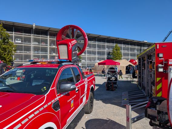 Die Einsatzmittel stießen bei den zahlreichen Besucherinnen und Besuchern sowie bei den teilnehmenden Feuerwehren auf großes Interesse. Die Einsatzkräfte erklärten die Funktionsweise der Geräte und standen für Fragen zur Verfügung.