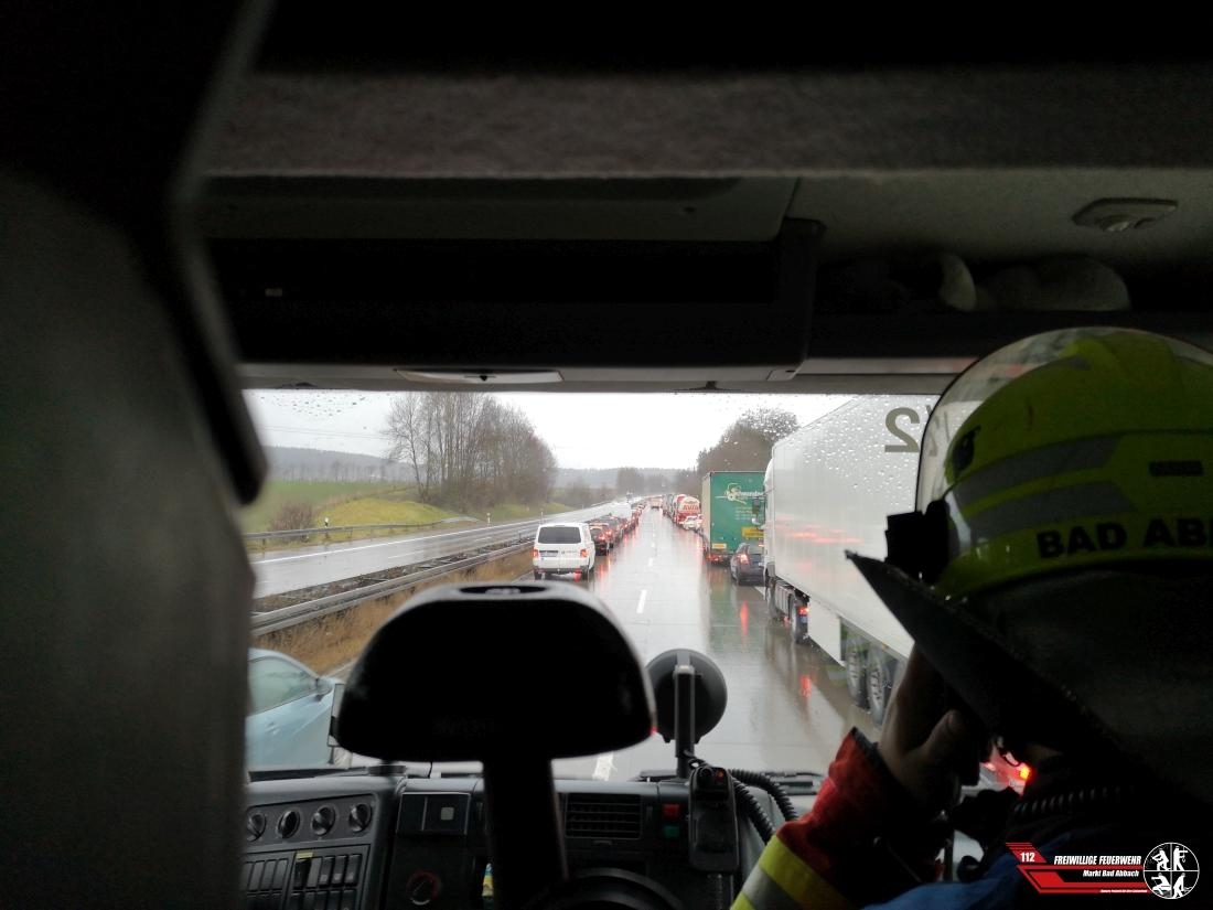 Gemeinsam mit den Kollegen der Feuerwehr Pentling wurden wir auf die Autobahn 93 in Fahrtrichtung Saalhaupt alarmiert. In einem Stau wegen einer Baustelle kam es zu einem Auffahrunfall zwischen einem Pkw und einem Lkw, eine Person wurde dabei verletzt und vom Rettungsdienst in ein nahegelegenes Krankenhaus verbracht. Die Kollegen der Feuerwehr Pentling mussten nicht mehr eingreifen und konnten die Einsatzstelle wieder verlassen. Während der Rettungs- und Bergungsmaßnahmen wurde die rechte Spur, sowie der Standstreifen gesperrt.