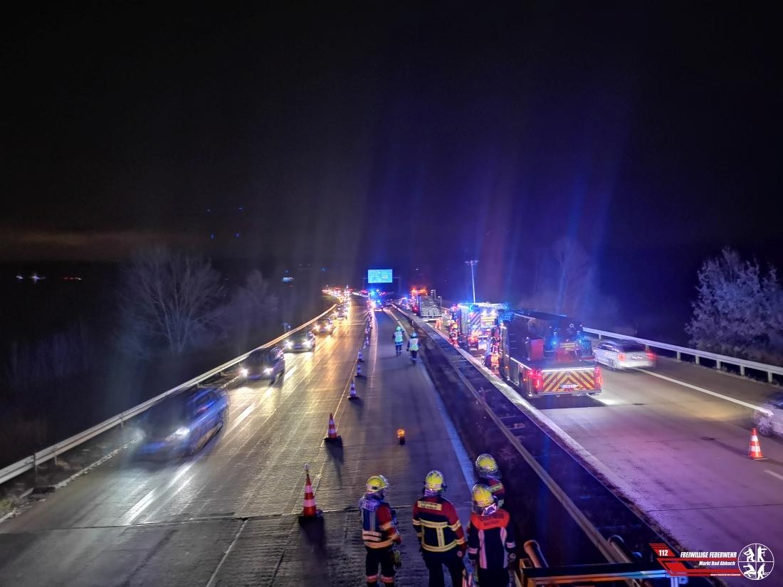 Um 19:17 Uhr wurden wir zur Unterstützung der Kräfte aus Langquaid und Hausen auf die Autobahn 93 zwischen dem Dreieck Saalhaupt und der Anschlussstelle Hausen in Fahrtrichtung München alarmiert. In Fahrtrichtung Regensburg kollidierte ein Lkw über mehrere Hundert Meter mit der Mittelleitplanke, worauf Trümmerteile und Erdreich auf die Gegenspur geschleudert wurden. Die linke Fahrspur wurde durch unseren Verkehrssicherungsanhänger abgesichert und durch das Personal des Hilfeleistungslöschfahrzeugs gereinigt.