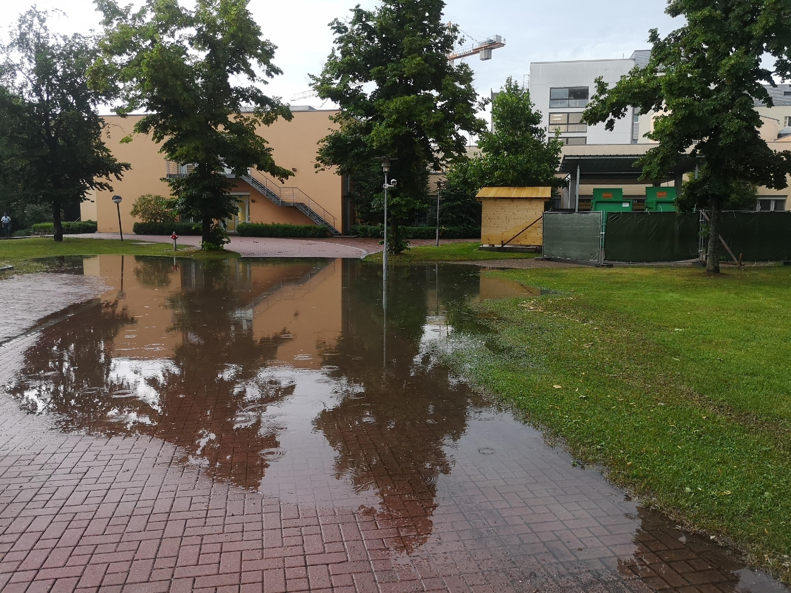 Ausfahrt der Notaufnahme der Asklepios Klinik aufgrund Starkregen überschwemmt.