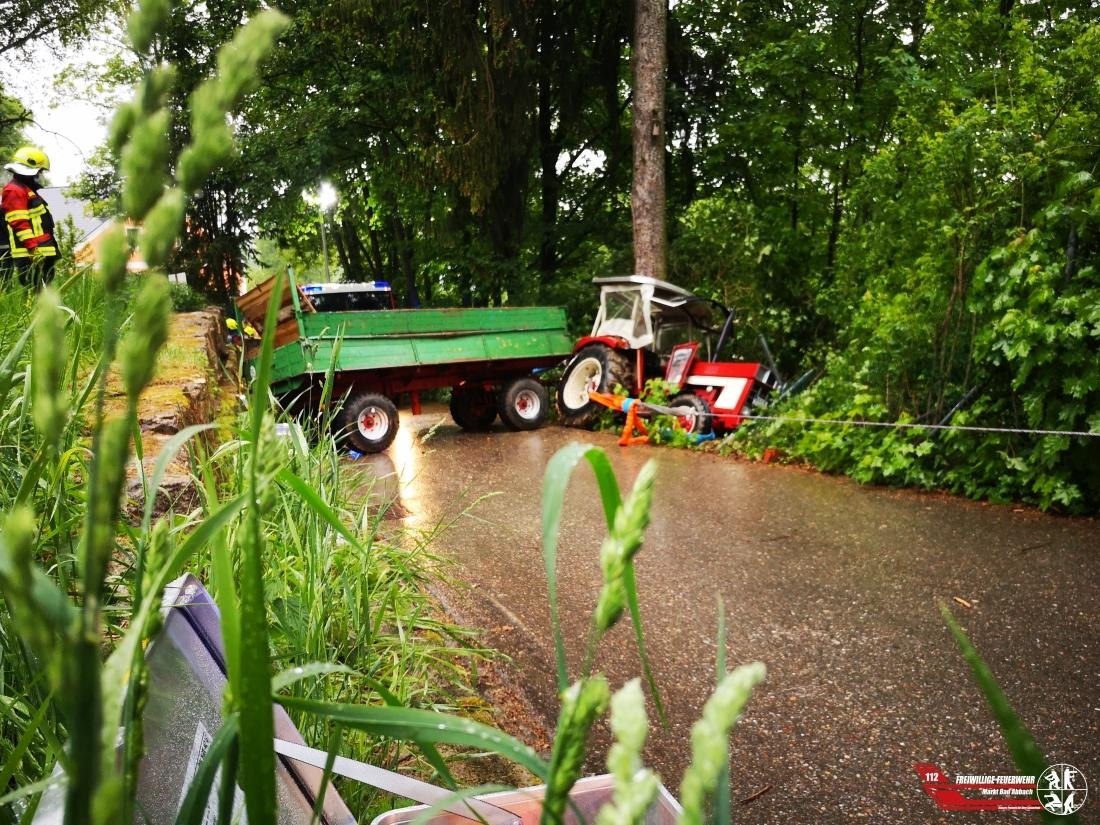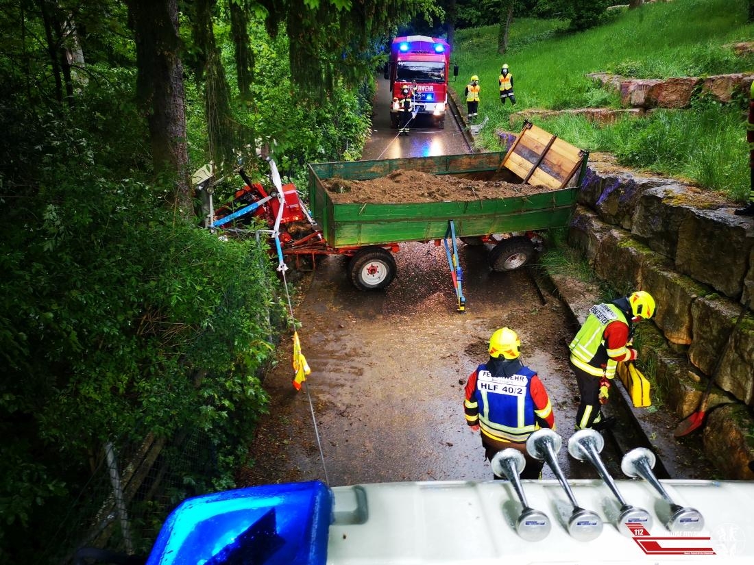 Um 17:50 Uhr wurden wir mit dem Schlagwort "Fahrzeug Sichern" in die Kaiser-Karl-V.-Allee alarmiert. Beim Eintreffen der Einsatzleitung bot sich folgende Lage: Ein Traktor samt Anhänger war aus ungeklärter Ursache von der Fahrbahn abgekommen und drohte eine Böschung hinabzustürzen. Mittels Seilwinde unseres HLF 20 und dem Mehrzweckzug 16, wurde von zwei Seiten das Gespann gegen weiteres Abrutschen gesichert. Bis zum Eintreffen eines Bergeunternehmens wurde die Einsatzstelle von uns ausgeleuchtet und abgesichert. Verletzt wurde glücklicherweise niemand.