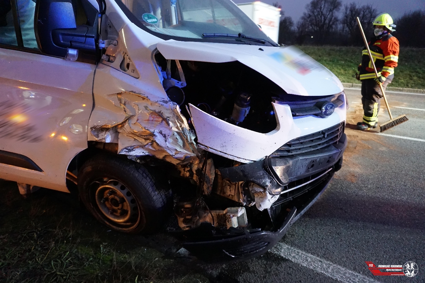 Wir banden ausgelaufene Betriebsstoffe, stellten den Brandschutz sicher und regelten den eintretenden Berufsverkehr mit einer wechselseitigen Lenkung.