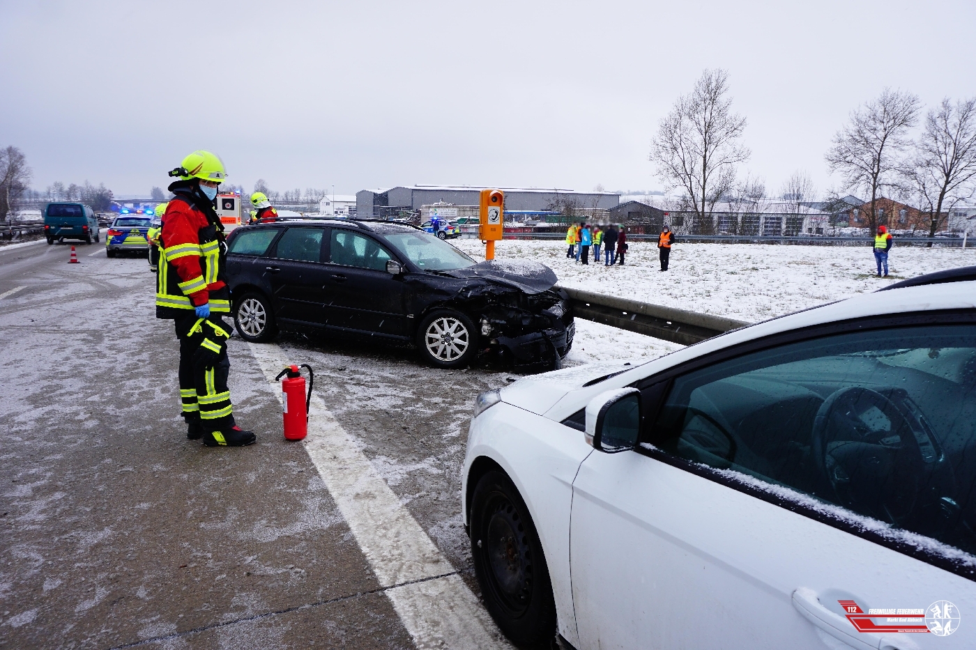Gegen 10:47 Uhr am heutigen Samstagmorgen wurden wir mit dem Schlagwort "Verkehrsunfall, sieben Pkw's, Person eingeklemmt" auf die Autobahn 93 auf Höhe der Anschlussstelle Hausen in Fahrichtung München alarmiert. Nach dem Eintreffen unseres Einsatzführugsdienstes und dem Rüstzug bot sich folgende Lage: Aufgrund ungeklärter Ursache kam es zu einem Verkehrsunfall mit vier beteiligten Fahrzeugen. Die vermeindlich eingeklemmte Person, konnte lediglich zusammen mit dem Rettungsdienst ohne schweren hydraulischen Rettungssatz schoned aus dem Farzeug befreit werden. Die Feuerwehr übernahm Verkehrslenkende Maßnahmen, sowie die Brandschutzsicherung und die Fahrbahnreinigung. Nachdem die verletzten Personen und die Pkw's abtransportiert wurden, konnten wir die Einsatzstelle der Autbahnmeisterei übergeben.