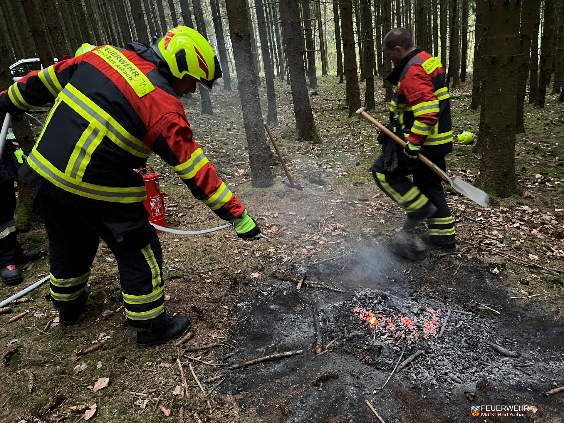 Um 19:35 Uhr wurden wir telefonisch über einen brennenden Holzstock in einem Waldgebiet nahe dem Baugebiet Heidfeld informiert. Nach einer Erkundung durch einen Führungsdienstgrad wurde ein Löschfahrzeug mit Kleinlöschgerät nachgefordert.