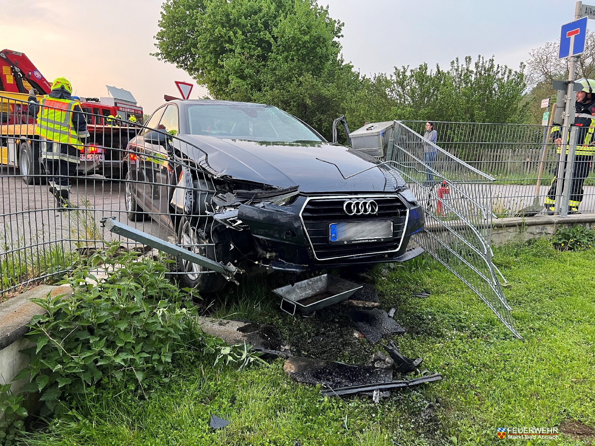 Um 5:42 Uhr wurde unsere Führung zusammen mit der Ortsteilwehr Lengfeld auf die Bundesstraße 16, Höhe Alkofen zu einem Verkehrsunfall alarmiert. Ein alleinbeteiligter Audi kam von der Fahrbahn ab, touchierte mehrere Verkehrsschilder und einen Gartenzaun, durchbrach den Zaun eines Privatanwesens und kam letztendlich zum Stehen.