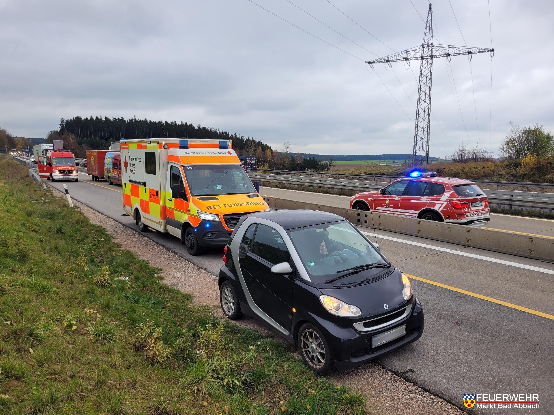 Aufgrund eines alarmierten Rettungsdiensteinsatzes auf der Autobahn, musste der Baustellenbereich kurzzeitig abgesichert werden.