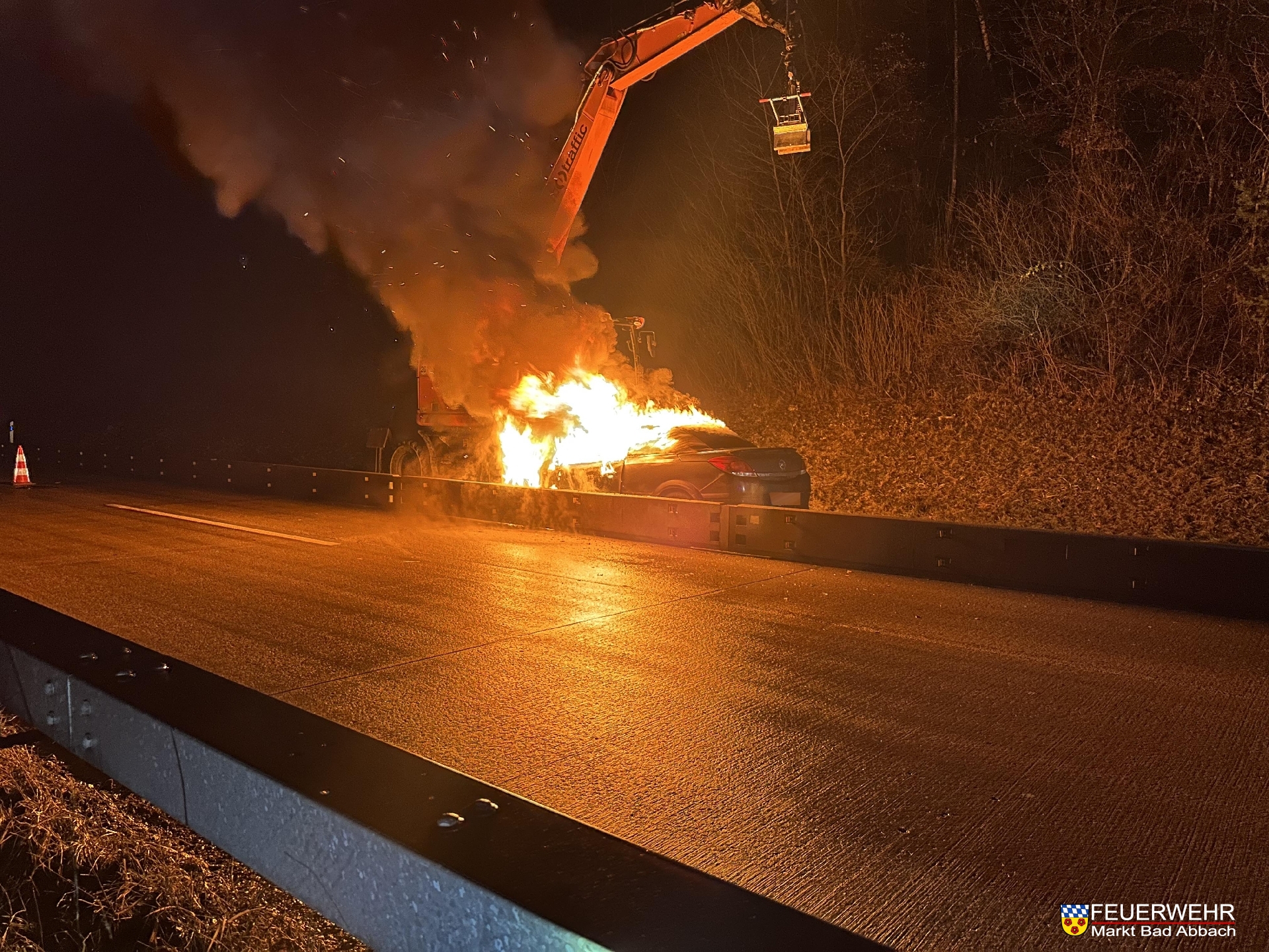 Um 4:18 Uhr wurden wir gemeinsam mit der Feuerwehr Teugn auf die Autobahn 93 zu einem brennenden Pkw zwischen dem Dreieck Saalhaupt und der Anschlussstelle Bad Abbach alarmiert.