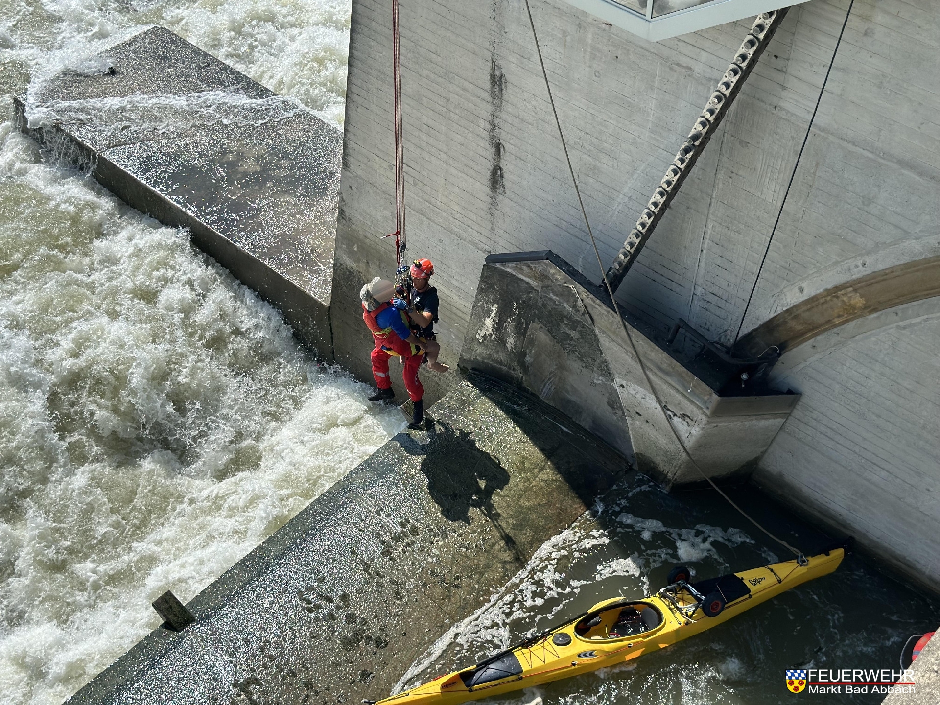 Ein Kajakfahrer geriet aus Unachtsamkeit in die Strömung des Donaukraftwerks und trieb in eine der Wehrklappen. Glücklicherweise konnte er sich aus letzter Kraft dort selbst sichern. Aufgrund der lebensgefährlichen Wassermaßen in diesem Bereich war ein alleiniges Befreien aus dieser Situation nicht mehr möglich.