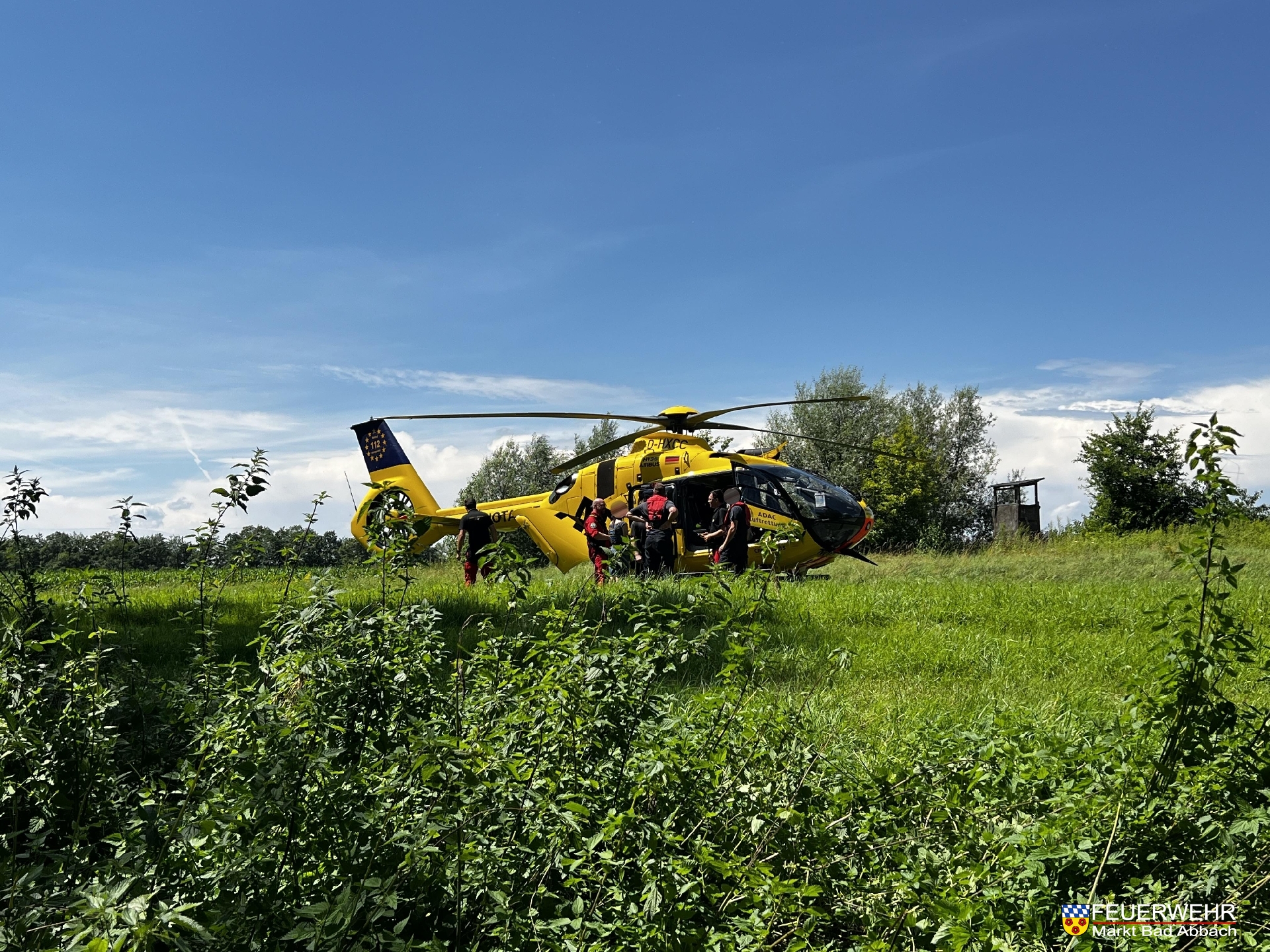 Unter Einsatz des Straubinger Rettungshubschraubers "Christoph 15" konnte beide Personen gesichtet werden. Das Mehrzweckboot unserer Wehr konnte die Personen den Umständen nach wohlauf aufnehmen und an Land verbringen. Beide wurden durch die mitalarmierten Kräfte des Rettungsdienstes notärztlich behandelt.