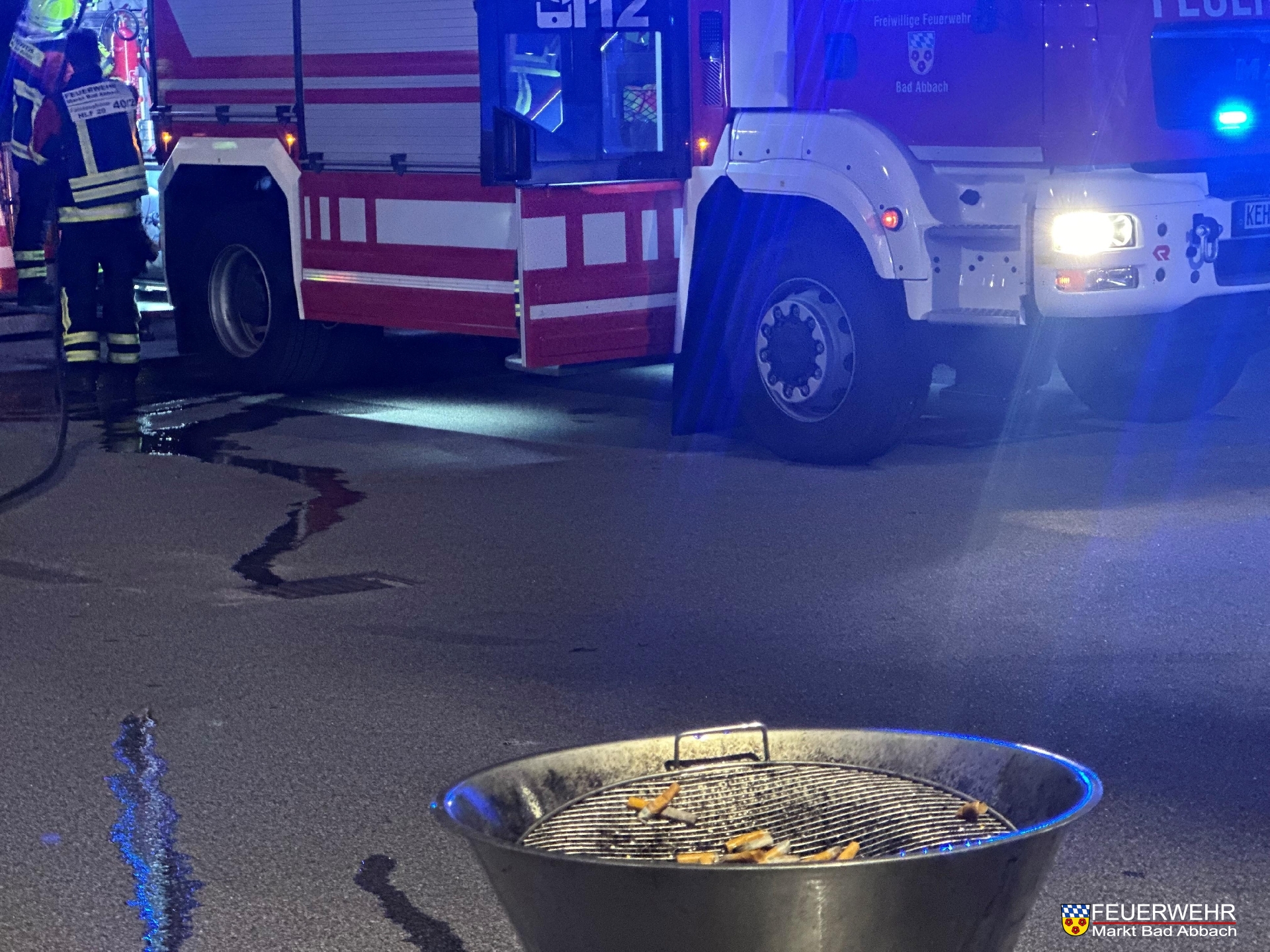 Gegen 22 Uhr am heutigen Dienstagabend wurden wir mit zahlreichen Einsatzkräften zu einer Rauchentwicklung im Asklepios Rehazentrum alarmiert. Nach Erkundung durch die Einsatzleitung konnte schnell Entwarnung gegeben werden, da es sich lediglich um einen rauchenden Aschenbecher im Freien handelte. Der Aschenbecher wurde durch unser Hilfeleistungslöschfahrzeug abgelöscht und mittels Wärmebildkamera kontrolliert.