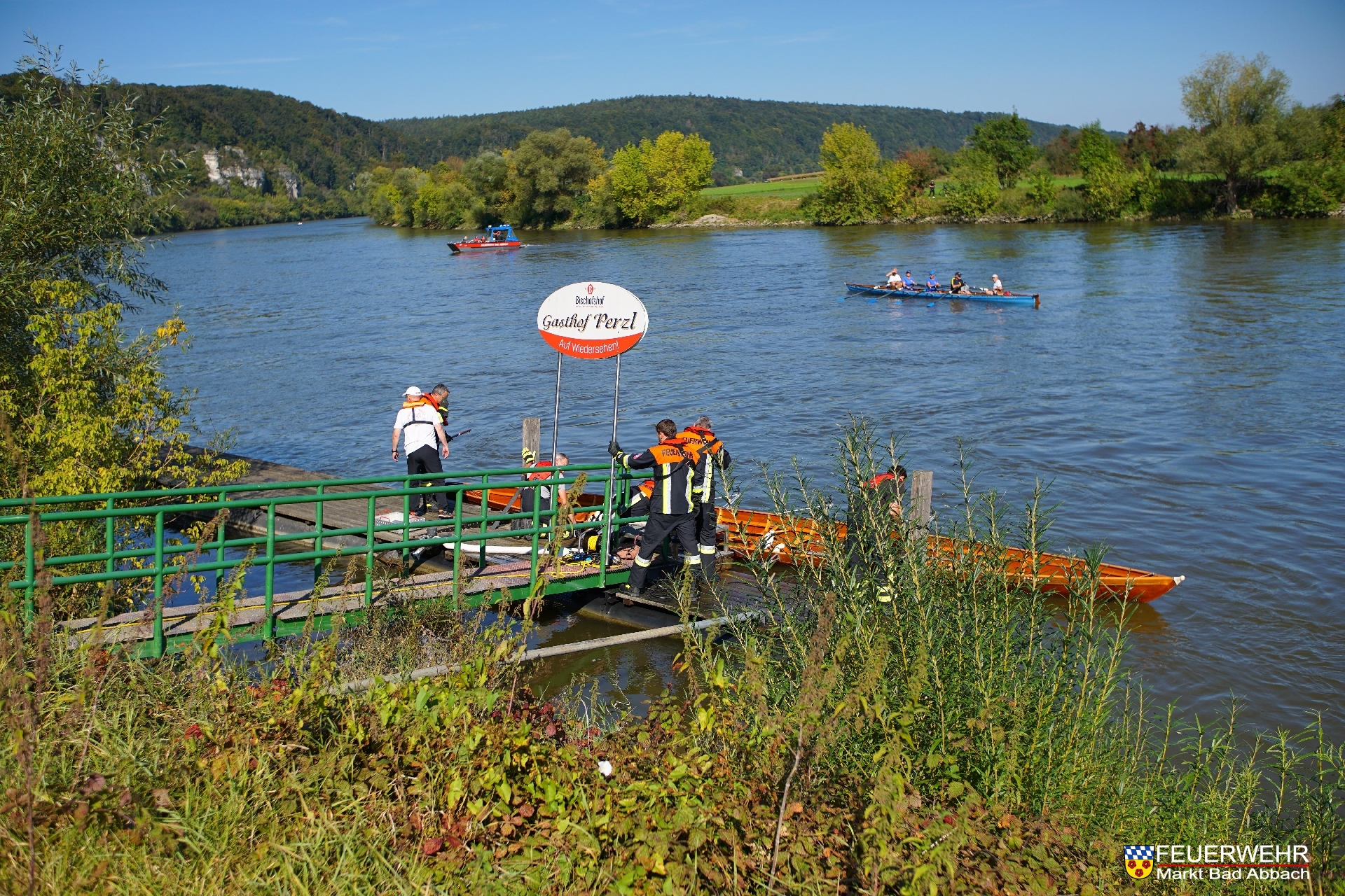 Um kurz nach 14 Uhr kenterte ein mit fünf Personen besetztes Kanu auf der Donau höhe Gundelshausen. Die Besatzung konnte sich aus eigener Kraft selbstständig ans Ufer retten.