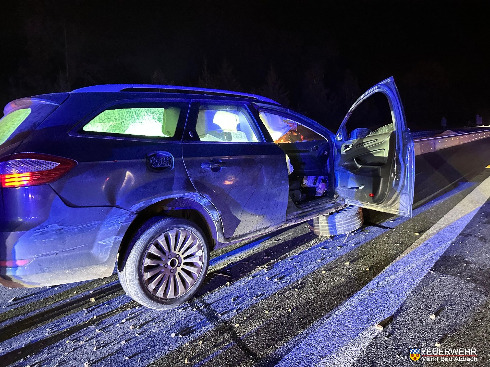 Gemeinsam mit der Feuerwehr Pentling wurden wir kurz nach Mitternacht zu einem Verkehrsunfall mit einem alleinbeteiligten Fahrzeug in den Baustellenbereich auf die Autobahn 93 alarmiert.