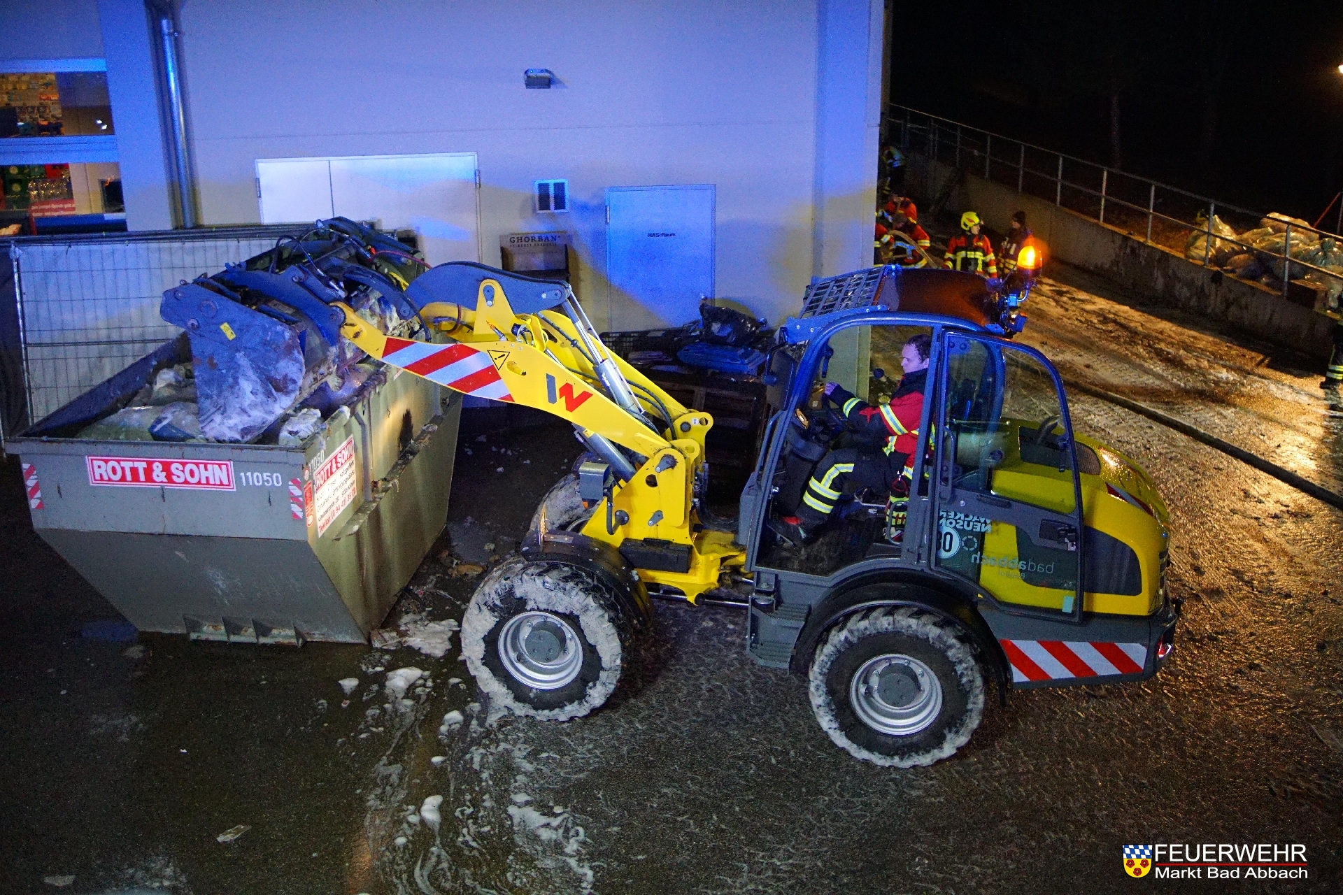 Ein Kelheimer Entsorgungsbetrieb wurde zum Wegziehen des Containers mit einem Trägerfahrzeug hinzugezogen. Daraufhin konnte dieser geöffnet, per Hand ausgeräumt und das Brandgut durch weitere Atemschutztrupps abgelöscht werden.