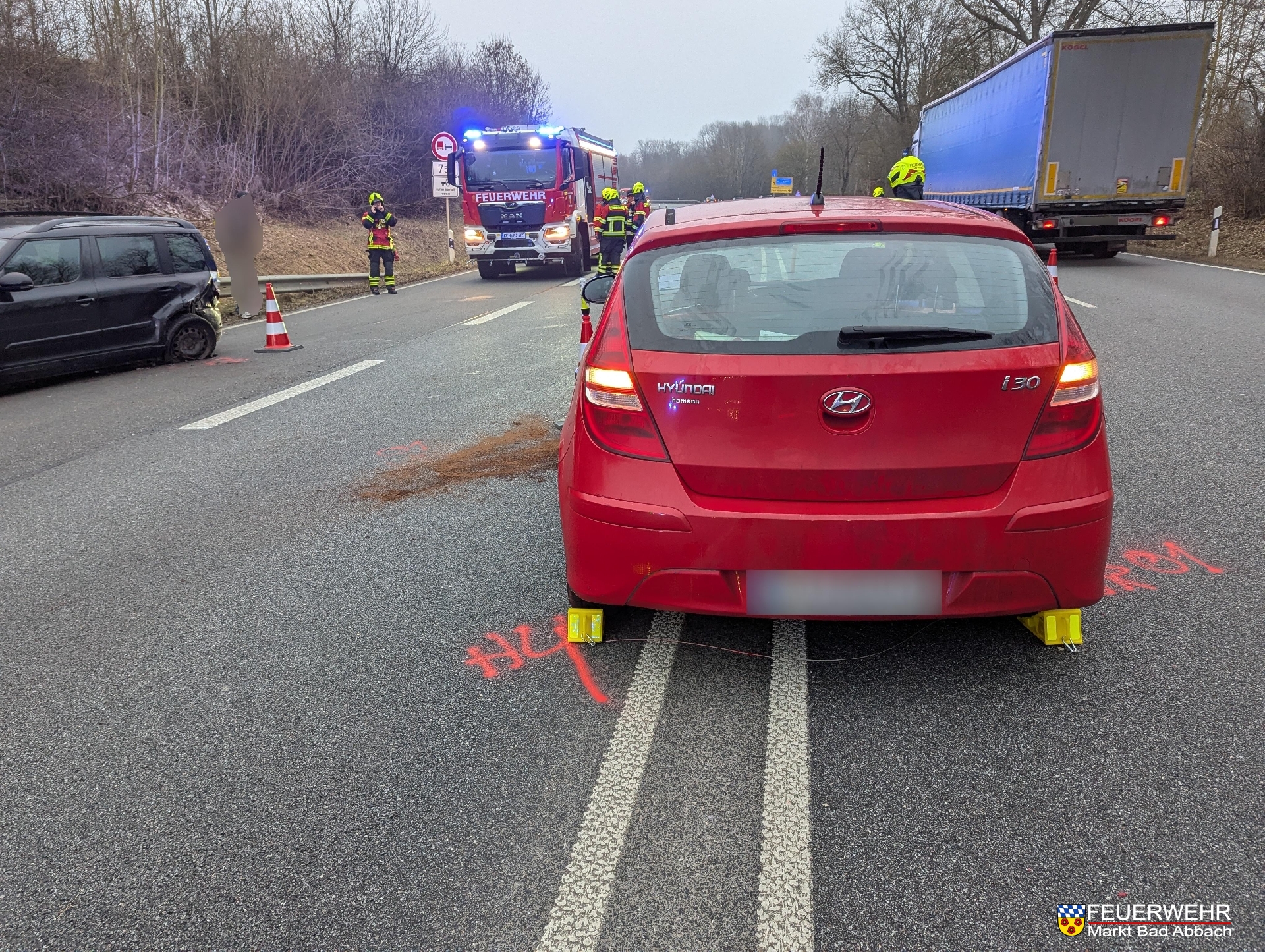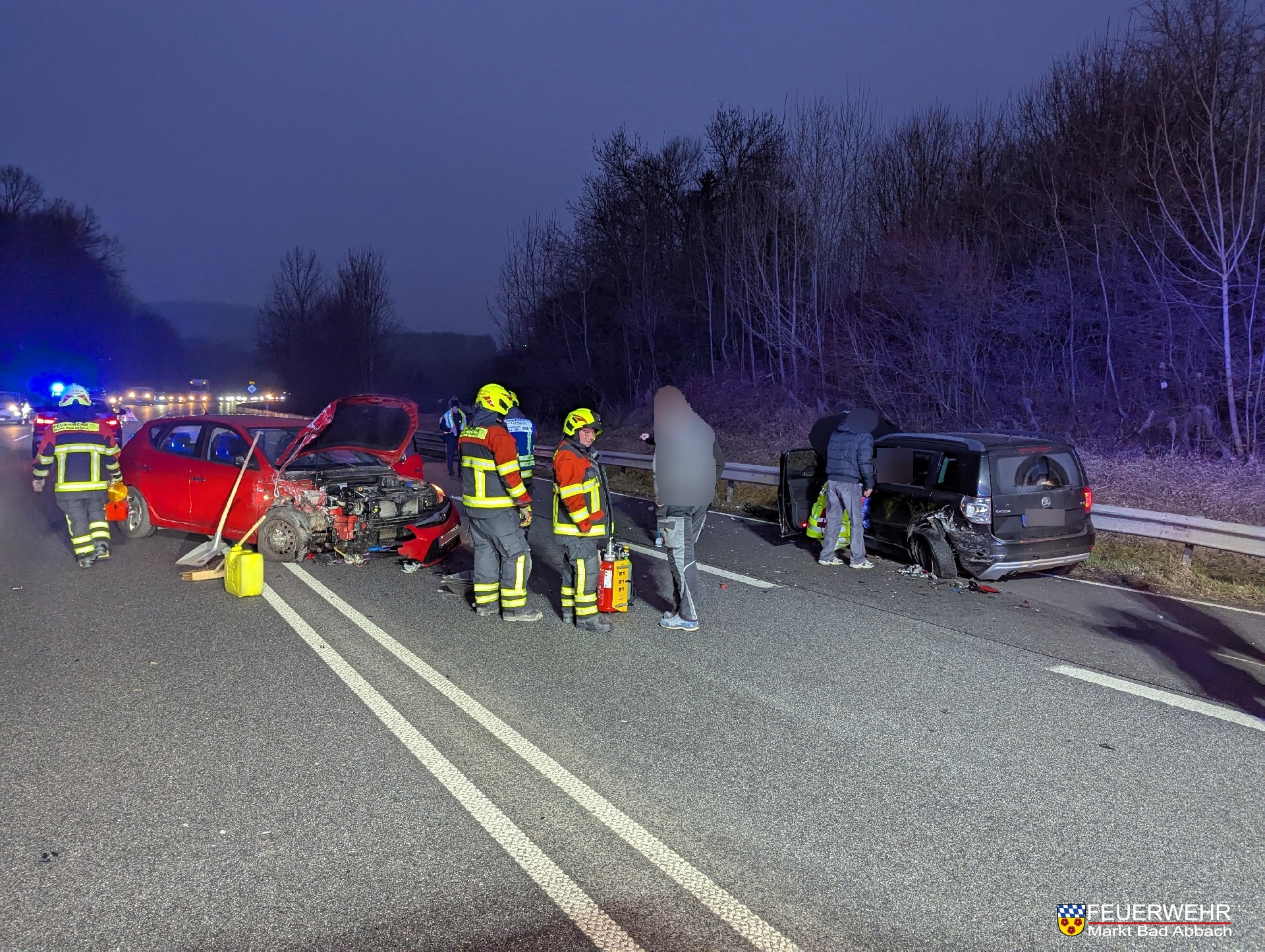 Heute wurden wir im morgendlichen Berufsverkehr zu einem Verkehrsunfall mit zwei beteiligten Fahrzeugen auf die Bundesstraße 16 alarmiert. Aufgrund des Trümmerfelds und zur medizinischen Versorgung musste die Bundesstraße in Richtung Kelheim für rund eine Stunde komplett gesperrt werden. Zwei Personen wurden bei dem Unfall verletzt und vom Rettungsdienst in nahegelegene Krankenhäuser verbracht. Wir kümmerten uns um die Verkehrsregelung, stellten den Brandschutz sicher und banden auslaufende Betriebsstoffe.