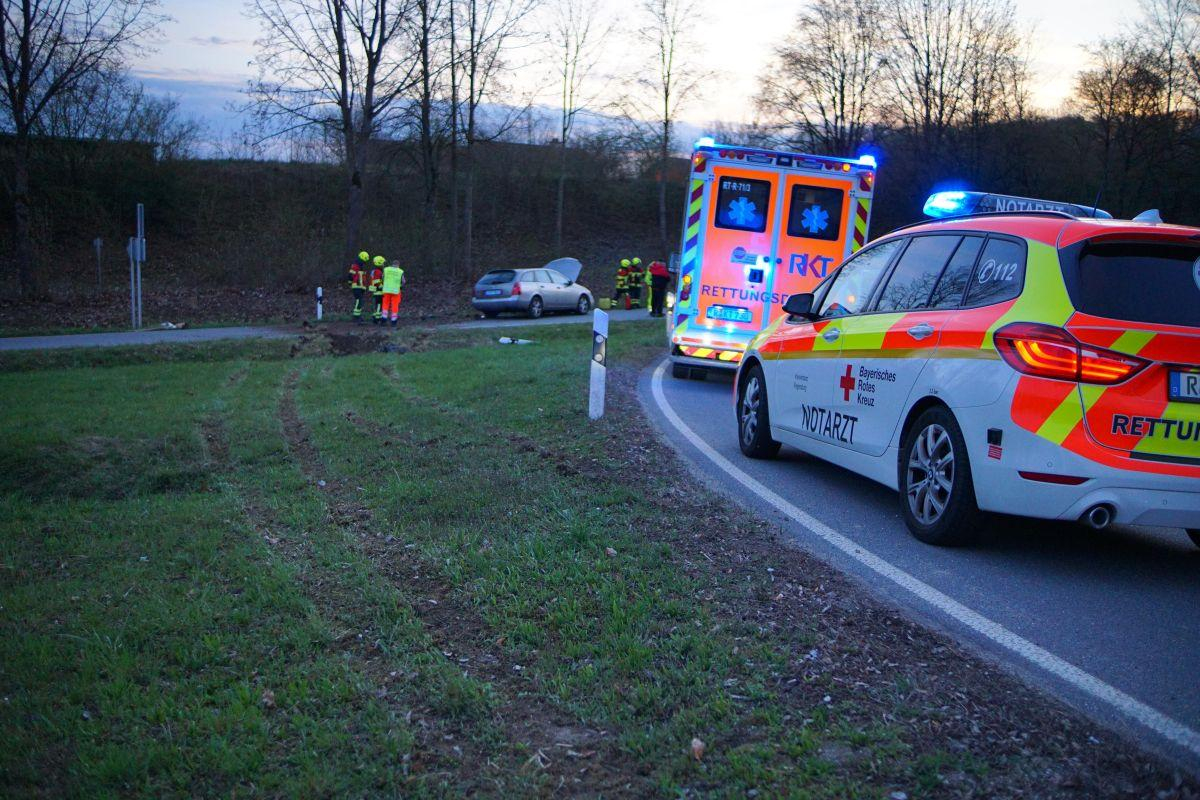 Ein alleinbeteiligter Pkw der Marke Nissan kam aus ungeklärter Ursache von der Fahrbahn ab, kollidierte mit dem Straßengraben und kam demoliert wieder auf der Fahrbahn zum Stehen.
