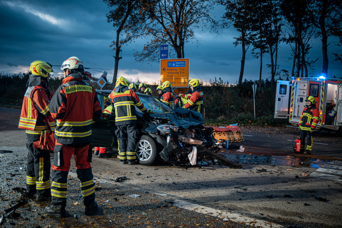 Unser erstes Hilfeleistungslöschfahrzeug und der Kommandowagen befanden sich in unmittelbarer Nähe, was eine schnelle Hilfeleistung sicherstellte. Aufgrund der Örtlichkeit und dem Schlagwort "VU - Person eingeklemmt" wurden zusätzlich die Wehren aus Poign, Wolkering und Pentling sowie medizinische Kräfte, unter anderem der Intensivhubschrauber Christoph Regensburg, mitalarmiert.