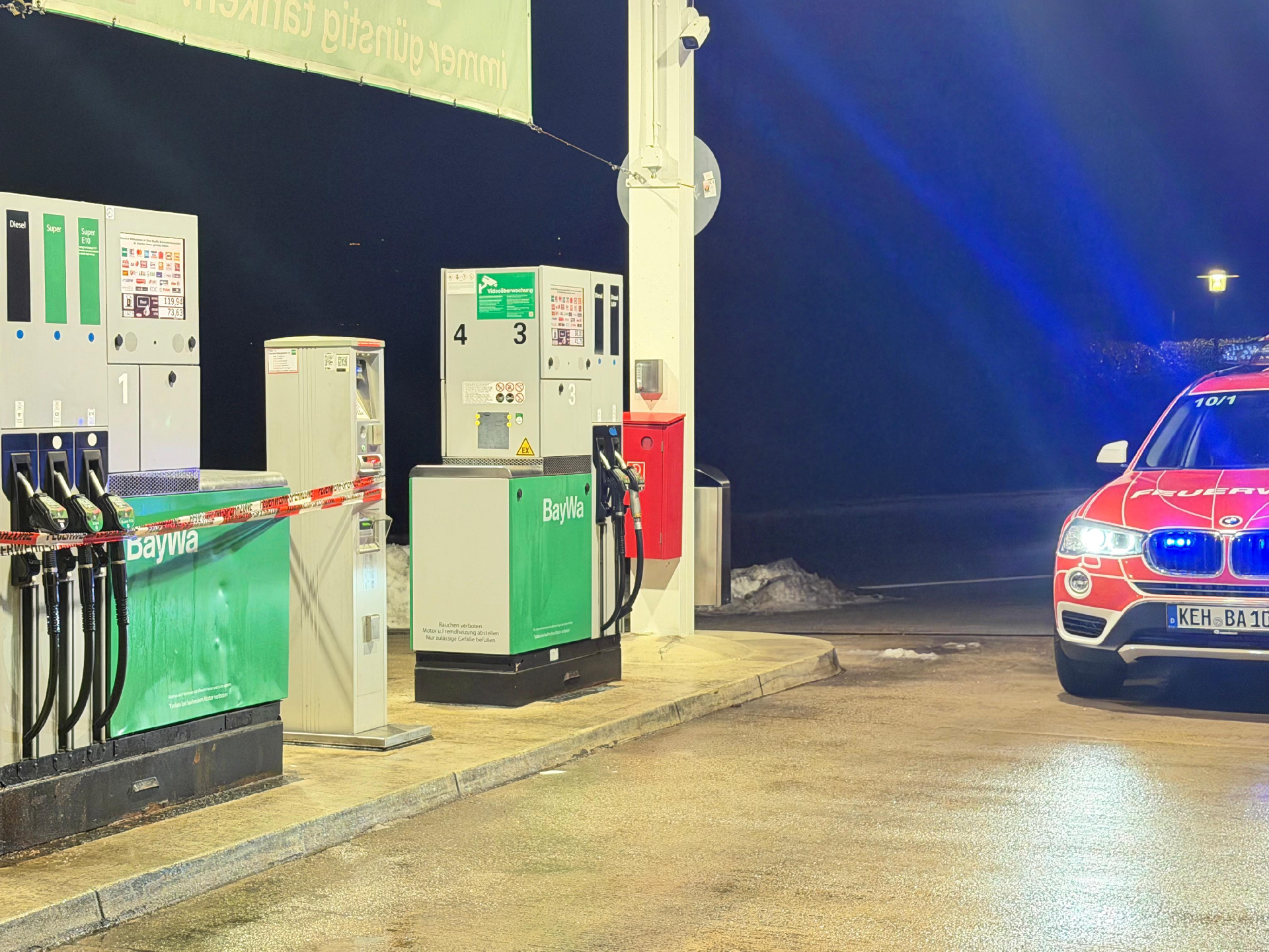 Wir wurden zur BayWa Tankstelle zu einer undichten Zapfsäule alarmiert. Bei Eintreffen des Führungsdienstes konnte dies nicht bestätigt werden. Vorsorglich wurde die Zapfsäule gesperrt und der Betreiber informiert.