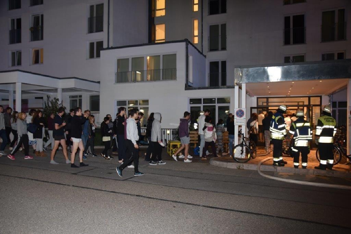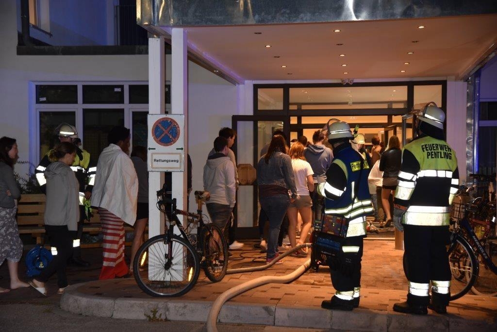 Gegen drei Uhr Morgens wurden wir für die Integrierte Leitstelle Regensburg nach Pentling zu einem Zimmerbrand mit Personen in Gefahr zu einem Studentenwohnheim alarmiert. Beim Eintreffen unserer Kräfte stand ein im Gebäude befindlicher Wäscheraum in Flammen. Die Kollegen aus Pentling hatten das Feuer zügig unter Kontrolle. Wir setzten einen Atemschutztrupp und die Drehleiter auf Bereitschaft, ein Eingreifen unsererseits war dennoch nicht mehr erforderlich. Zwei Personen wurden aufgrund eingeatmeter Rauchgase vom Rettungsdienst versorgt. Nachdem der Brand gelöscht wurde, konnten wir die Einsatzstelle wieder verlassen.