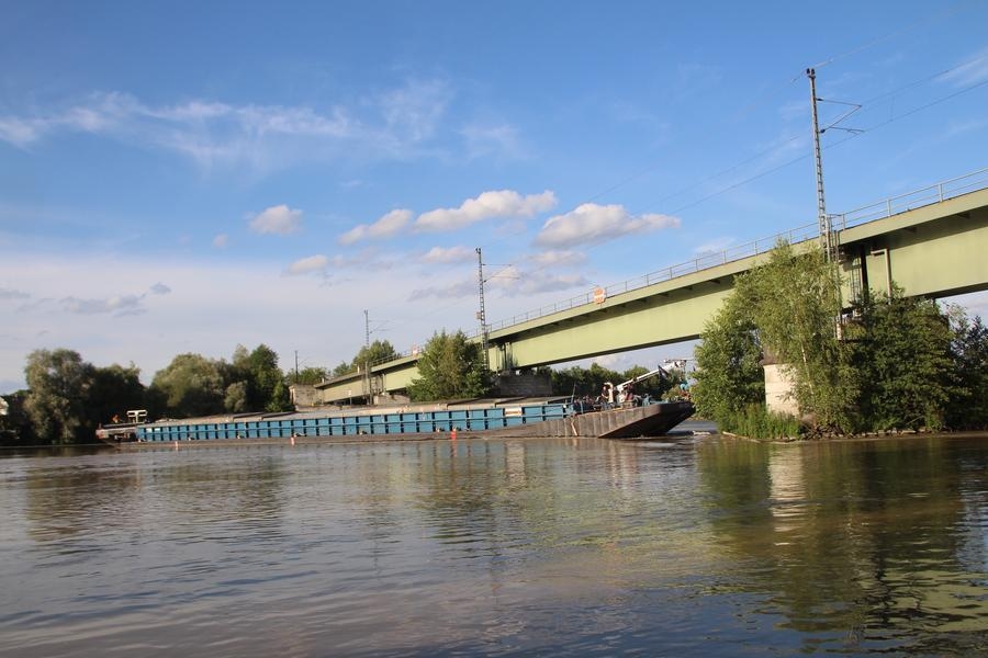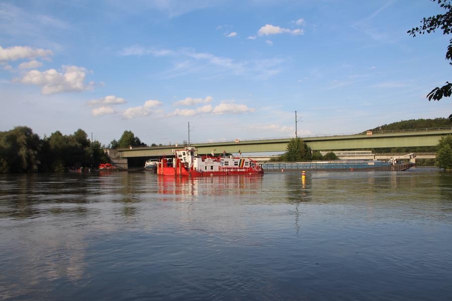 Die zweite große Alarmmeldung an diesem Tag lautete "Kollision Frachtschiff" auf der Donau. Die Integrierte Leitstelle Landshut alarmierte um 16:10 Uhr ein Großaufgebot an Einsatzkräften an Donau bei Poikam. Aus ungeklärter Ursache havarierte ein mit Stahl beladener Schubverband und kollidierte mit einer über die Donau führende Eisenbahnbrücke. Die Crew des Havaristen wurde mittels einer Drehleiter gerettet. Glücklicherweise schlug das Schiff nicht Leck, so dass keine Gefahr des Sinkens bestand. Durch die Einsatzkräfte der Feuerwehr wurden Verkehrssperrungen und Umleitungen eingerichtet. Eine Sperrung der Bahnlinie Regensburg - Ingolstadt leitete der Deutsche Bahn Notfallmanager ein.