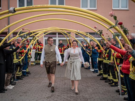 Es war ein wunderschöner Tag voller Freude, Lachen und unvergesslicher Momente. Ein Spalier, bestehend aus Angehörigen, Freunden, Kollegen, Kameraden der Ortsteilwehren und unserer Wehr, begrüßte das frisch vermählte Paar vor dem Rathaus in Bad Abbach. Wir sind so stolz, Teil dieses besonderen Moments gewesen zu sein, und wünschen dem frisch vermählten Paar alles erdenklich Gute für ihre gemeinsame Zukunft.