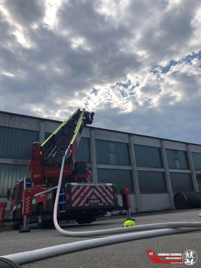 Um 14:51 Uhr wurden wir mit der Meldung "Brand Dachstuhl" erneut nach Teugn Thronhofen alarmiert. Im Dach des Hallenkomplexes vom Morgen schwellte ein Feuer. Zusammen mit den Wehren aus Teugn, Lengfeld, Saalhaupt und Kelheim-Stadt galt es einen massiven Löscheinsatz in ca. 10 Metern Höhe mittels unserer und der Drehleiter aus Kelheim einzuleiten um eine weitere Ausbreitung im Dachinneren zu vermeiden.