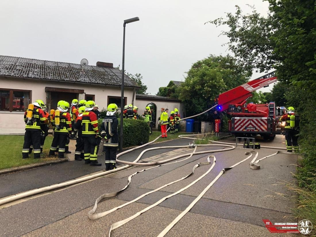 Zu einem Dachstuhlbrand wurden wir heute Abend um 18:26 Uhr in den Kalkofenring alarmiert. Nach einem kurzen, aber heftigen Unwetter mit mehreren Blitzeinschlägen hat es leider auch das Dach eines Wohnhauses erwischt. Mittels Drehleiter und Rettungssäge wurde die Dachhaut an der Einschlagstelle geöffnet und die Glutnester abgelöscht, sowie die verbrannte Dämmwolle ausgeräumt. Gleichzeitig befanden sich zwei Atemschutztrupps im Innenangriff. Ein Trupp war im Dachboden um die Brandbekämpfung von innen zu unterstützen, während der zweite Trupp das restliche Gebäude, sowie die Elektroverteilung kontrollierte. Die Feuerwehr Lengfeld wurde durch den Einsatzleiter mit weiteren Atemschutzträgern nachalarmiert. Der Energieversorger wurde ebenfalls verständigt um das Haus von der Elektroversorgung zu nehmen. Der örtliche Bauhof unterstütze uns bei den Arbeiten, um die geöffnete Stelle im Dach mittels einer Plane vor weiterem Regen bis zur Reparatur zu schützen. Aufgrund des Blitzeinschlags kam es auch in umliegenden Wohnhäusern zu elektronischen Schäden. Eine Person wurde dabei leicht verletzt und von den Kräften des Rettungsdienstes versorgt.