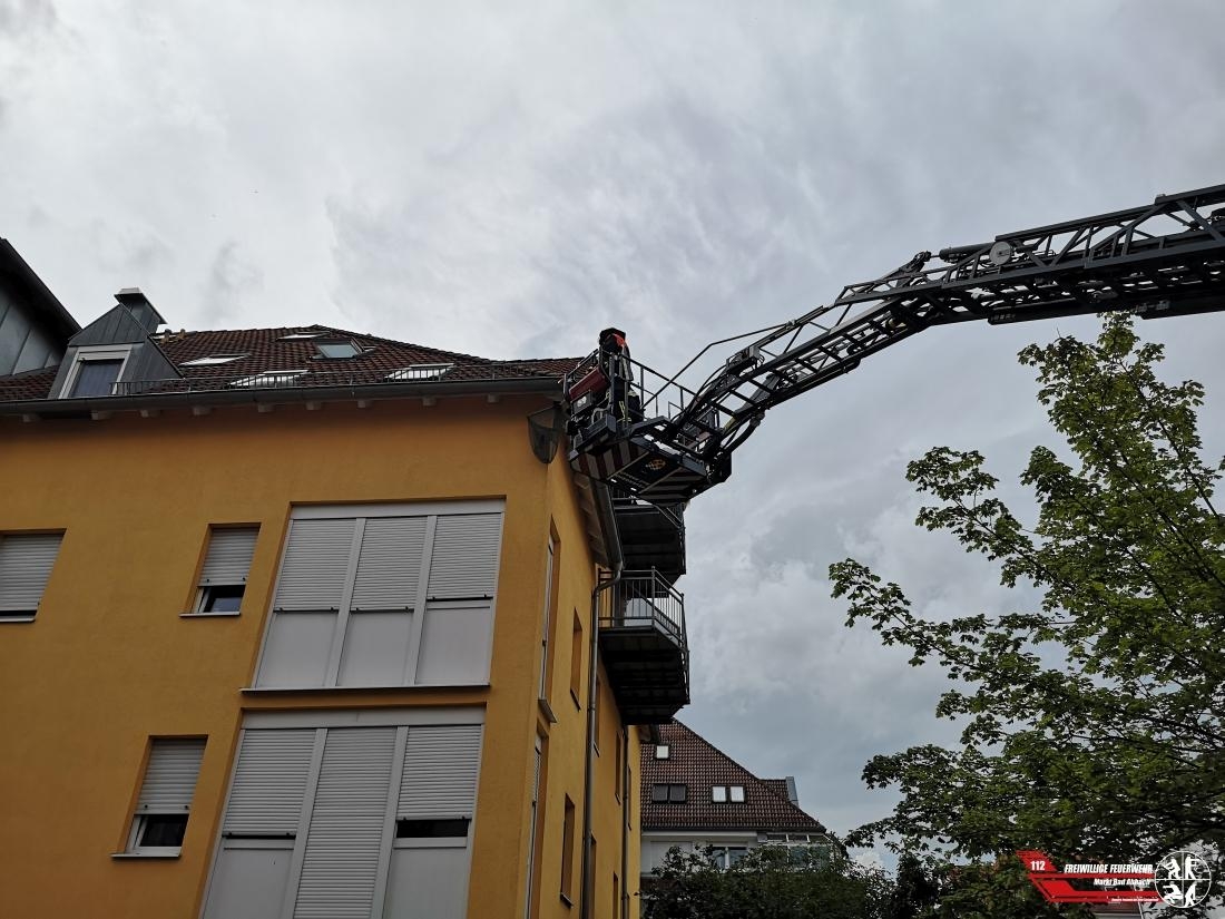 Wir wurden zu einer Kleintierrettung in die Konrad-Adenauer-Straße alarmiert, hier hatte sich eine Schwalbe in einem Vogelschutz verfangen und konnte sich nicht mehr selbst befreien. Mittels Drehleiter haben wir den Vogel gerettet und dann von den Schnüren befreit. Der Vogel flog nach der Rettung wieder davon.