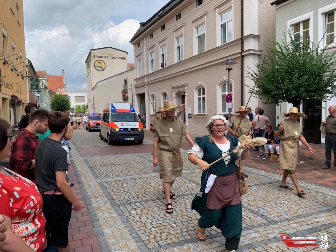 Während eine Staffel bei der Brand-Sicherheitswache am Burgberg eingesetzt war, wurde der Festumzug ebenfalls durch uns mit der Unterstützung der Feuerwehr Oberndorf abgesichert. Leider hatten es hier unsere Einsatzkräfte oft mit nicht freundlichen Verkehrsteilnehmern zu tun. Ansonsten verlief der Festumzug ohne größere Einschränkungen.