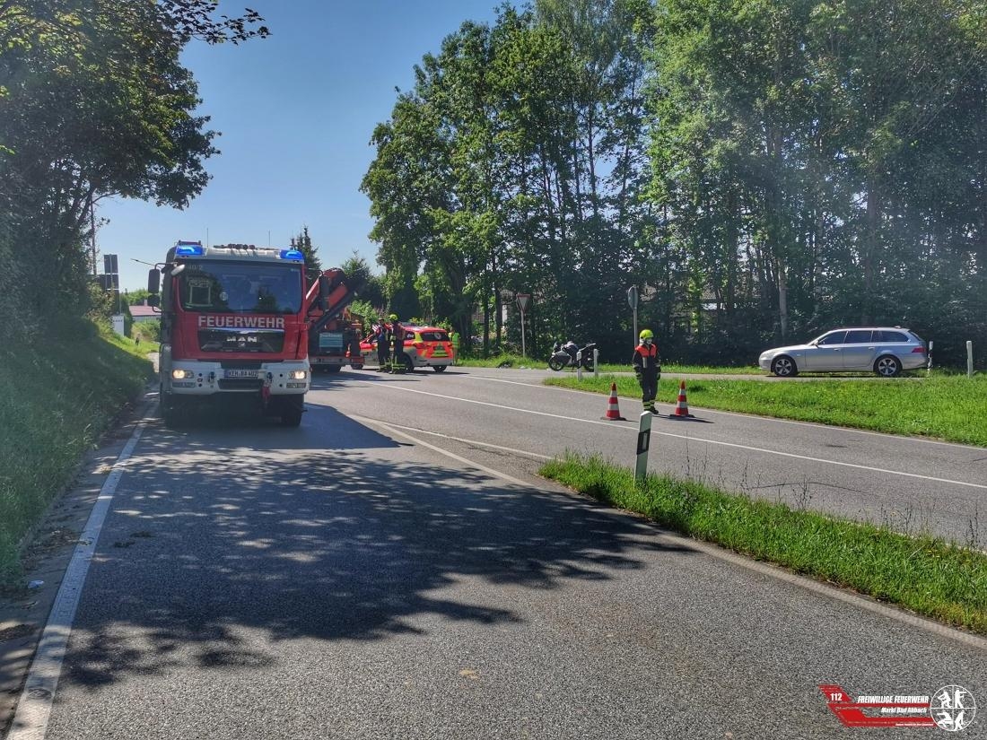 Wir wurden mit dem Rettungsdienst zu einem schweren Verkehrsunfall mit einem Motorrad in die Regensburgerstraße Kreuzungsbereich B16 Abfahrt-Nord alarmiert. Aufgrund des vorherigen Einsatzes befanden sich noch einige Kräfte auf der B15Neu, daher wurde ein sofortiger Nachalarm für die Feuerwehr Lengfeld veranlasst. Die schwer verletzte Person wurde bereits vom Rettungsdienst und Notarzt versorgt, auch ein Hubschrauber kam zum Einsatz. Während der Rettungs- und Unfallaufnahme war die Straße teilweise komplett gesperrt.