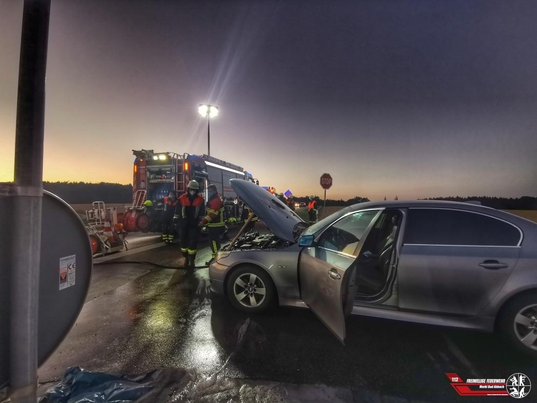 Gegen 19:05 Uhr wurden wir für die Leitstelle Regensburg zu einem brennenden Pkw, auf Höhe der Abzweigung Seedorf R20 alarmiert. Ein Fahrzeug der Marke BMW brannte im Bereich des Motorraums. Bis zum Eintreffen der Einsatzkräfte konnte kein offenes Feuer mehr festgestellt werden. Ein Atemschutztrupp kontrollierte mit einer Wärmebildkamera und kühlte den noch heißen Motorraum ab. Parallel wurden ausgelaufene Betriebsstoffe abgebunden und der Verkehr durch die Kräfte der Feuerwehr Poign in Zusammenarbeit mit uns geregelt.