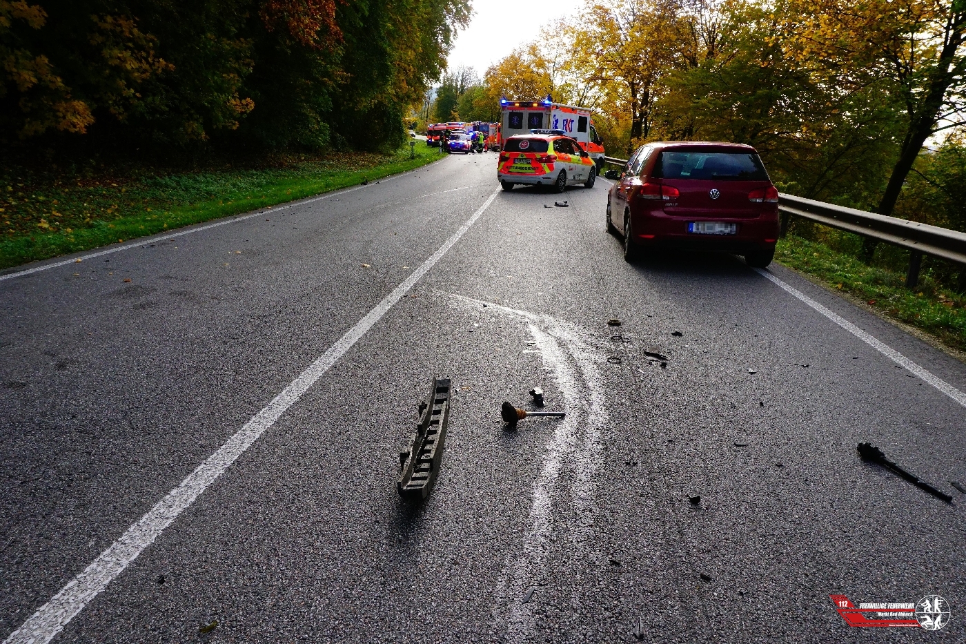 Gemeinsam mit mehreren Feuerwehren wurden wir auf die Bundesstraße 16 zu einem Verkehrsunfall mit mehreren Pkw, sowie mehreren Verletzten alarmiert. Aus uns unbekannter Ursache kam es zu einem Frontalzusammenstoß zwischen zwei Fahrzeugen, dabei wurden insgesamt acht Personen verletzt und in umliegende Krankenhäuser transportiert. Während der gesamten Einsatzdauer war die Straße zwischen den Ausfahrten Lengfeld-Eiermühle und Abzweigung Teugn komplett für den Verkehr gesperrt.