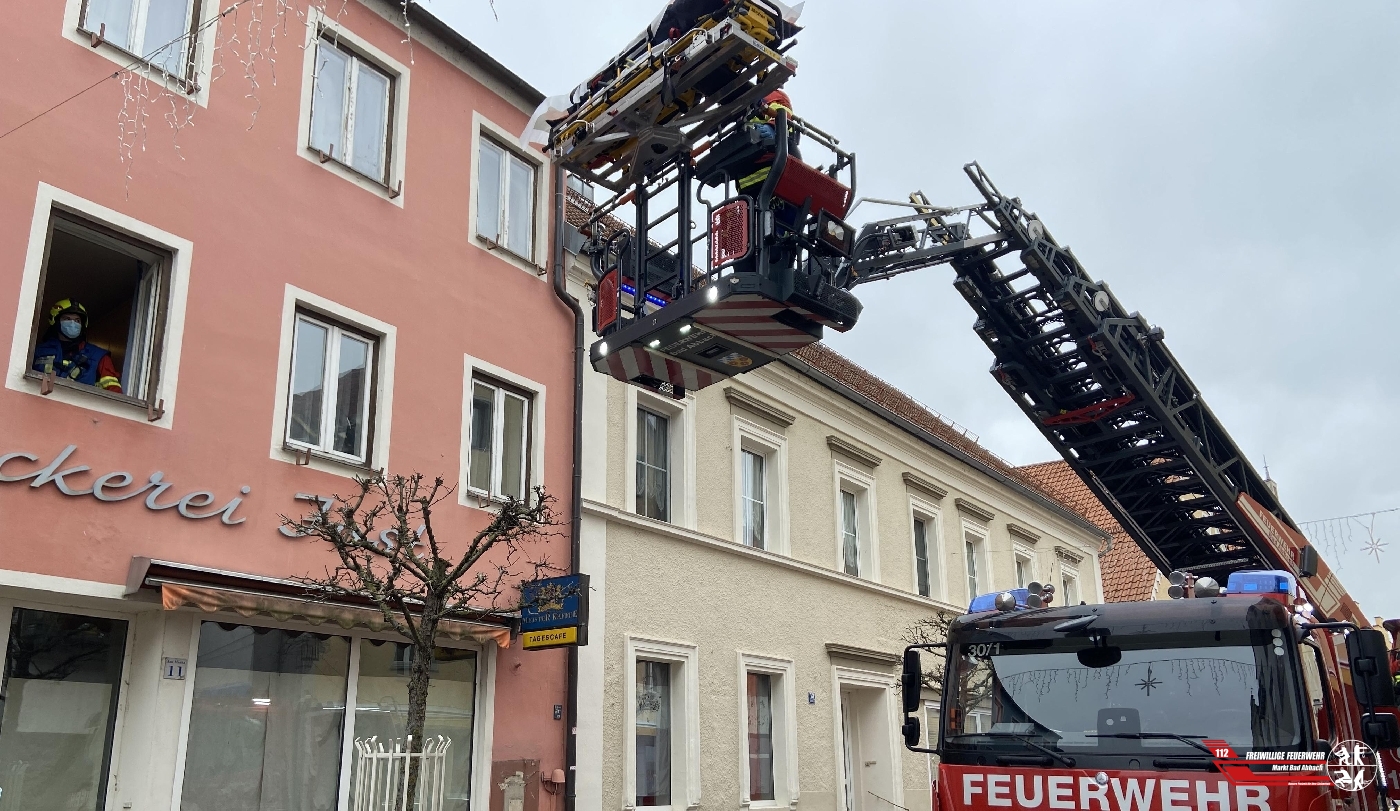 Am heutigen Montagmittag wurden wir zu einer Drehleiterrettung in den Markt Bad Abbach alarmiert. Der bereits vor Ort befindliche Rettungsdienst forderte aufgrund eines engen Treppenhauses die Drehleiter an. Nachdem die verletzte Person von Rettungsdienst und Notarzt versorgt wurde, konnte sie zügig zu Boden verbracht werden.