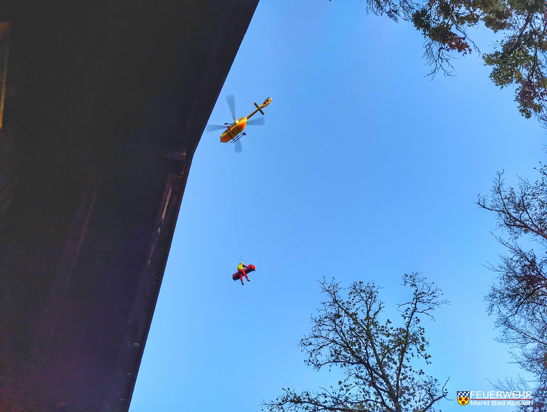 Durch die Integrierte Leitstelle Landshut wurde der Rettungshubschrauber Christoph 1 aus München mit der Rettungswinde angefordert, diese kam dementsprechend auch zum Einsatz. Zuerst wurde der Notarzt, sowie ein Luftretter der Bergwacht abgewinscht. Nach den vorbereiteten Maßnahmen wurde der Patient samt Notarzt wieder vom Hubschrauber aufgewinscht und in ein nahegelegenes Krankenhaus verbracht.
