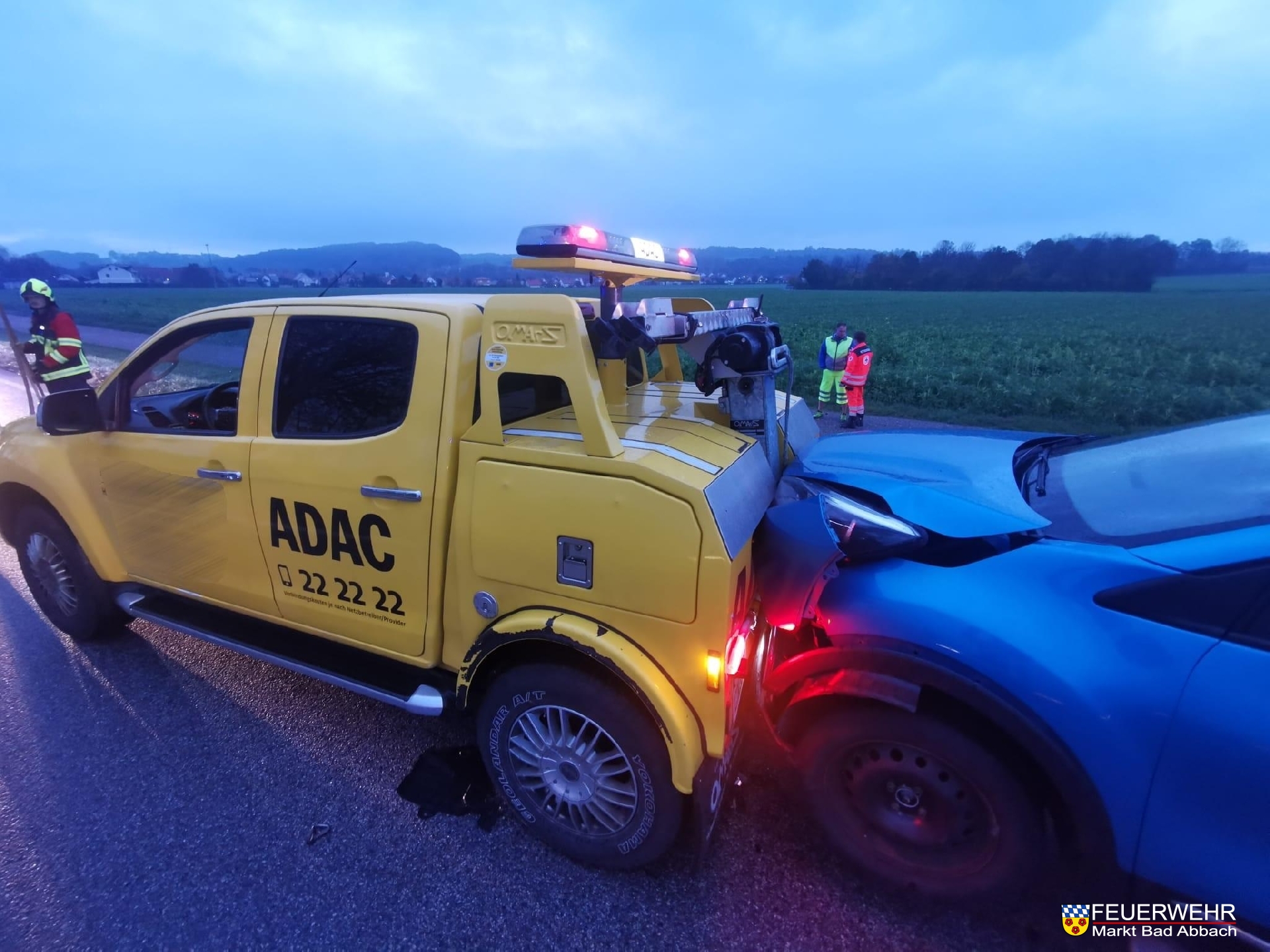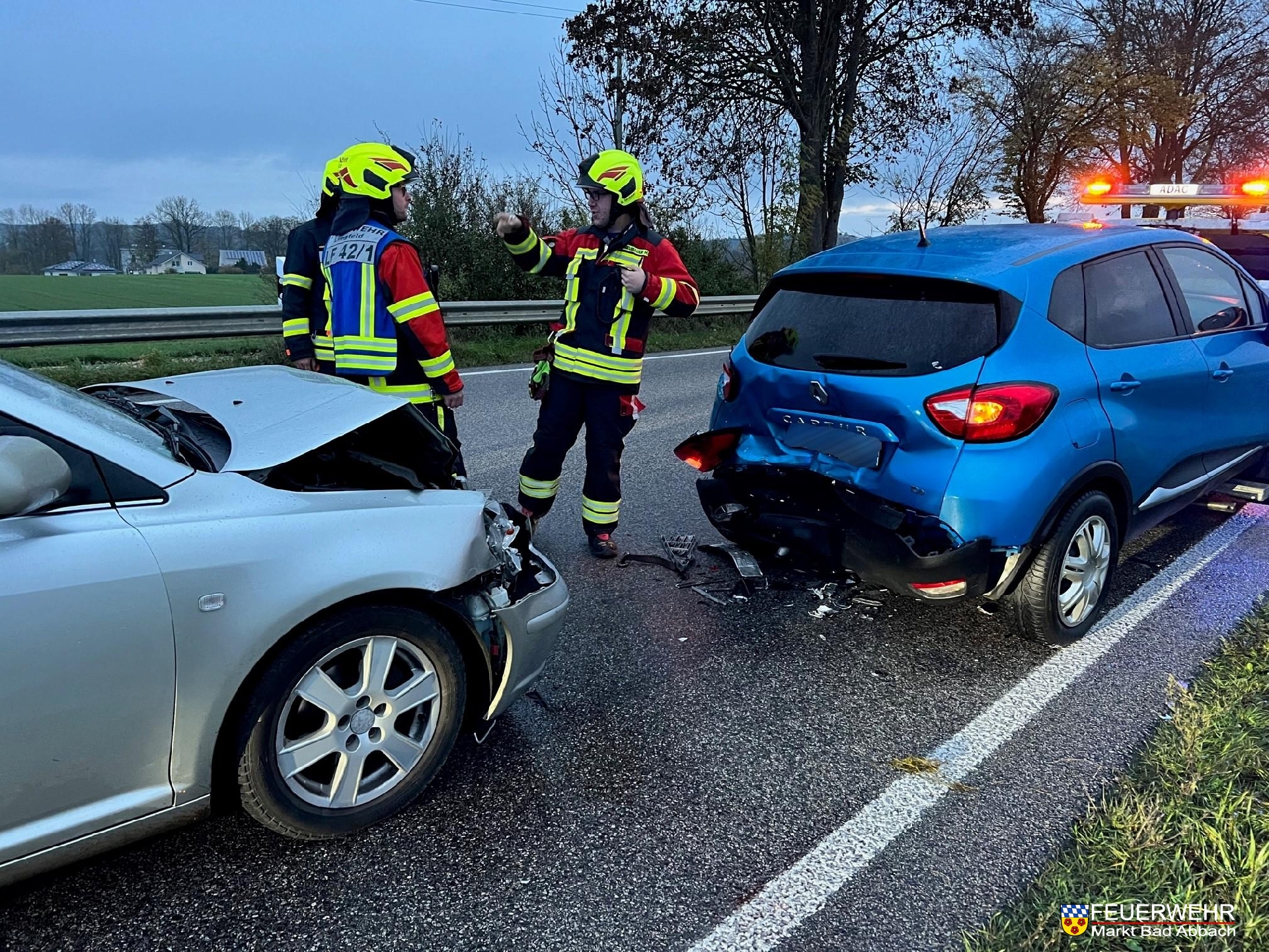 Eine Pkw-Lenkerin fuhr auf einen bereits im Abschleppvorgang befindlichen weiteren Pkw auf. Die mitalarmierten Kräfte des Rettungsdienstes versorgten die verletzten Personen.