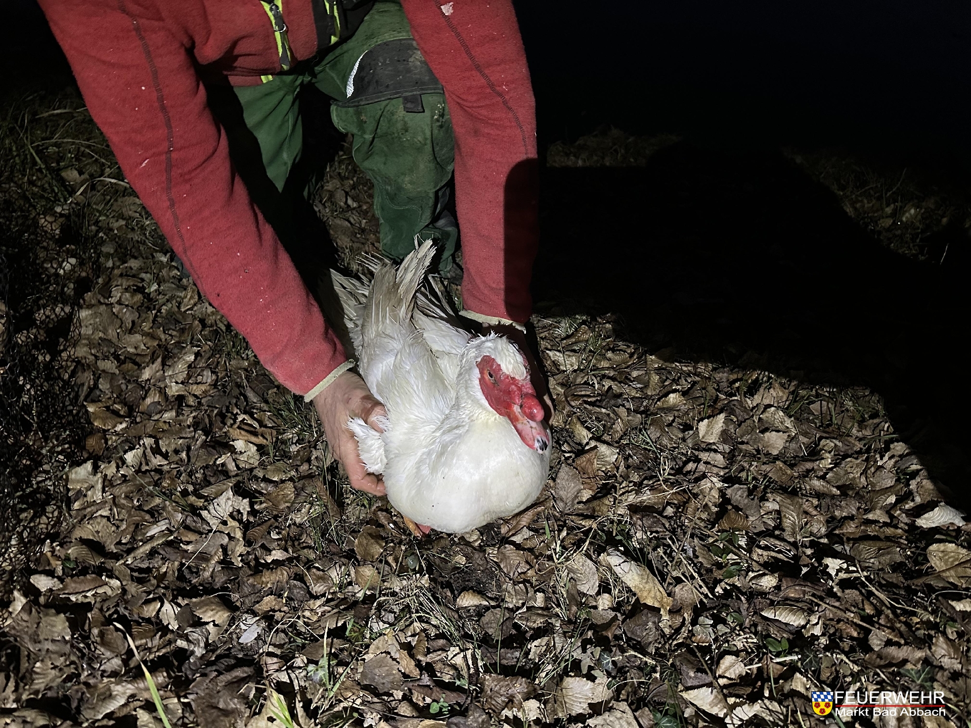 Passanten bemerkten eine verletzte Warzenente am Ufer der Donau und informierten über den Notruf die Feuerwehr.