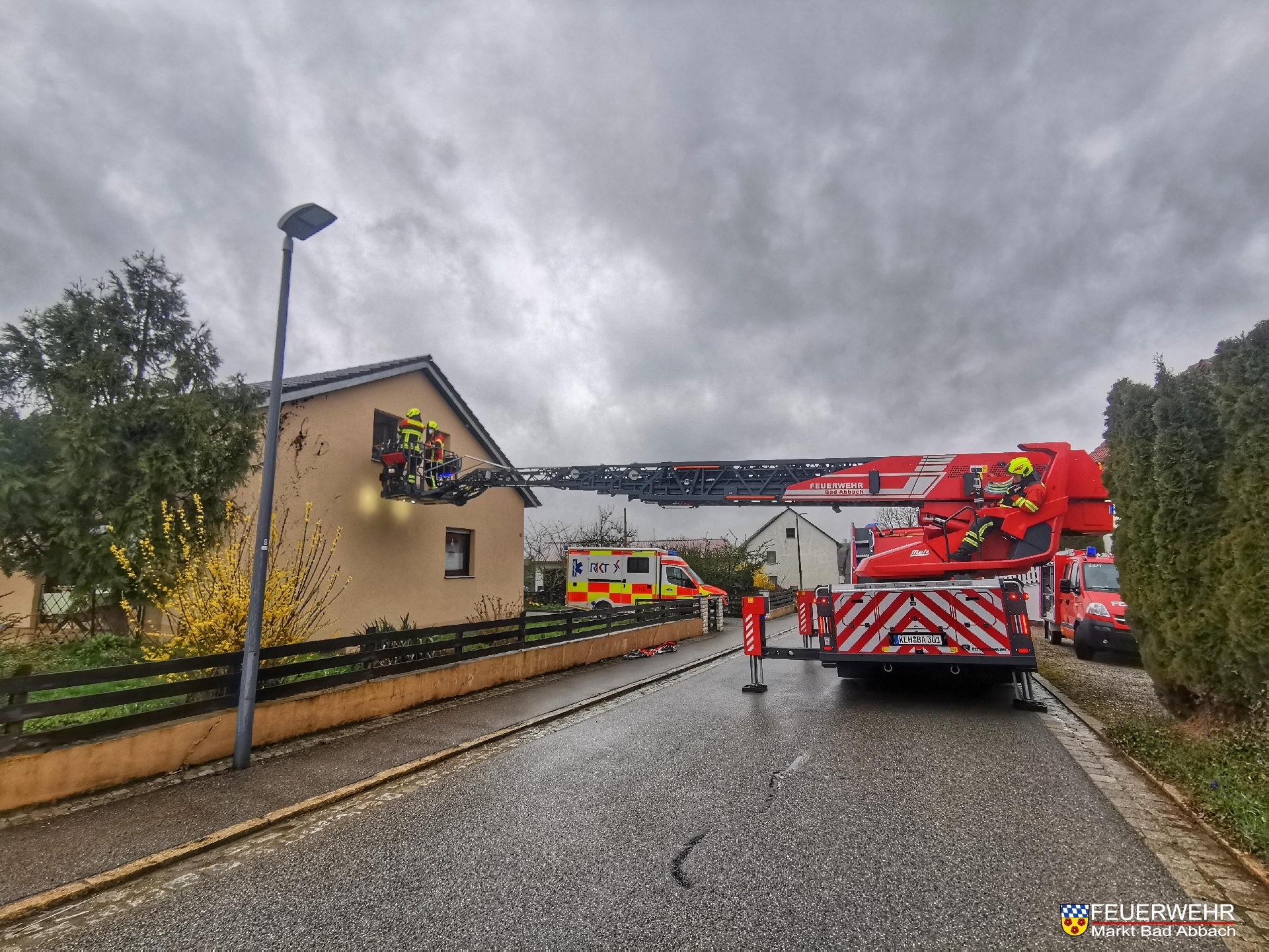 Um 08:35 Uhr wurden wir für die Integrierte Leitstelle Regensburg überörtlich nach Bergmatting zu einer Drehleiterrettung alarmiert. Eine erkrankte Person musste mittels Drehleiter aus dem 1. Obergeschoss zu Boden verbracht werden. Nachdem die Person zügig dem Rettungsdienst übergeben werden konnte, konnten wir die Einsatzstelle wieder verlassen.