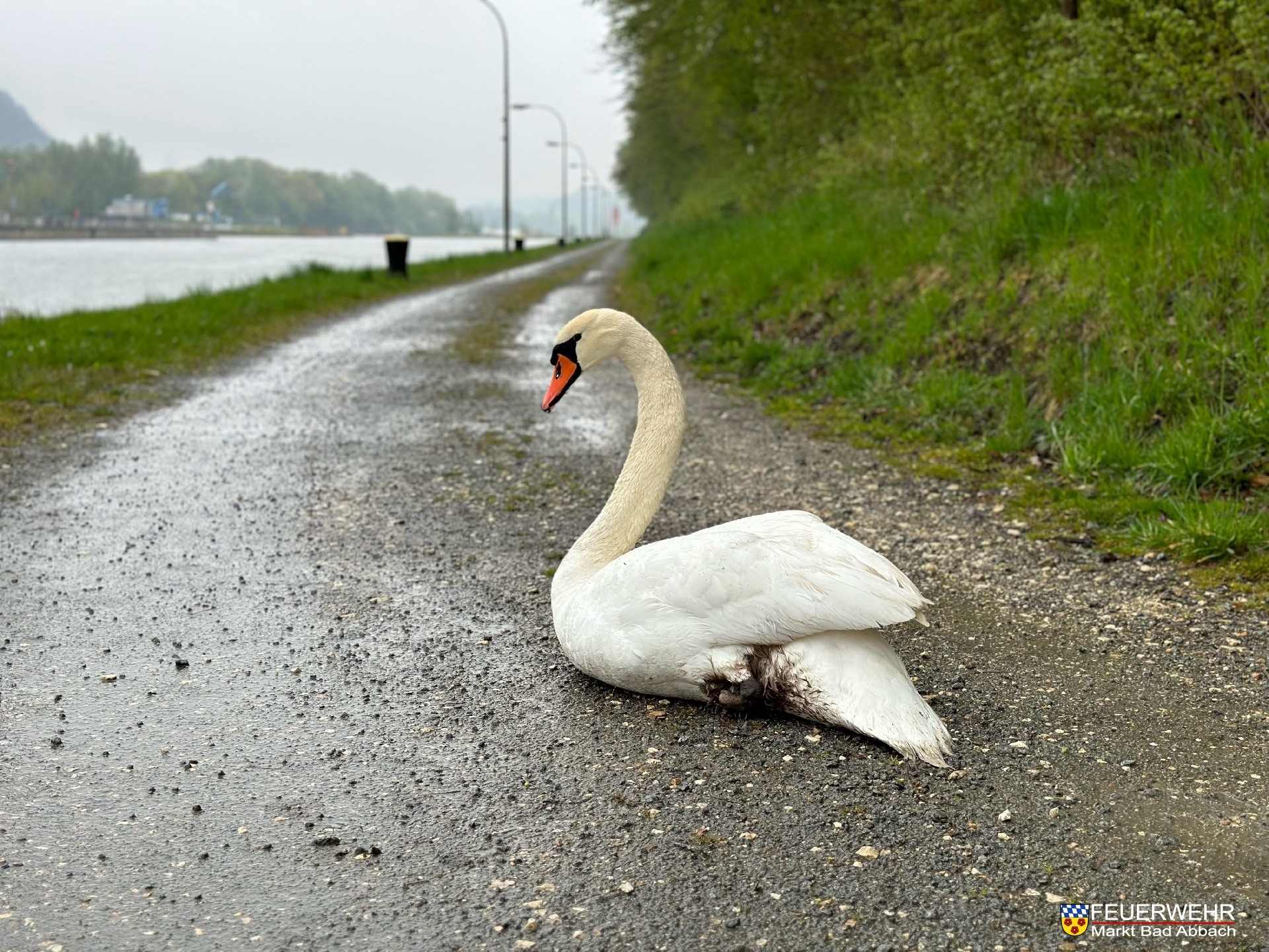 Passanten informierten uns gegen 12:45 Uhr über einen verletzten an der Schleuse Bad Abbach sitzenden Schwan.