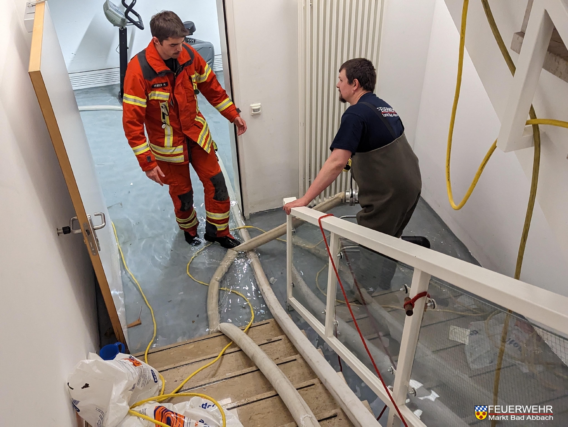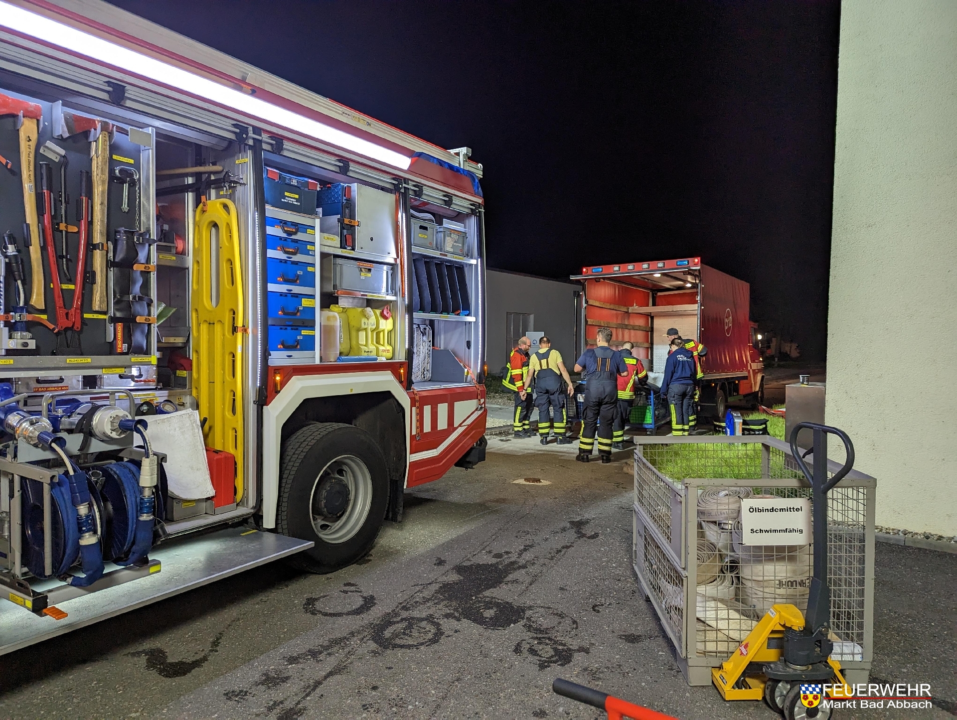 Um mit weiteren Pumpen zu unterstützen, forderte die Einsatzleitung zusammen den staatseigenen Gerätewagen Hochwasser der Feuerwehr Langquaid an.