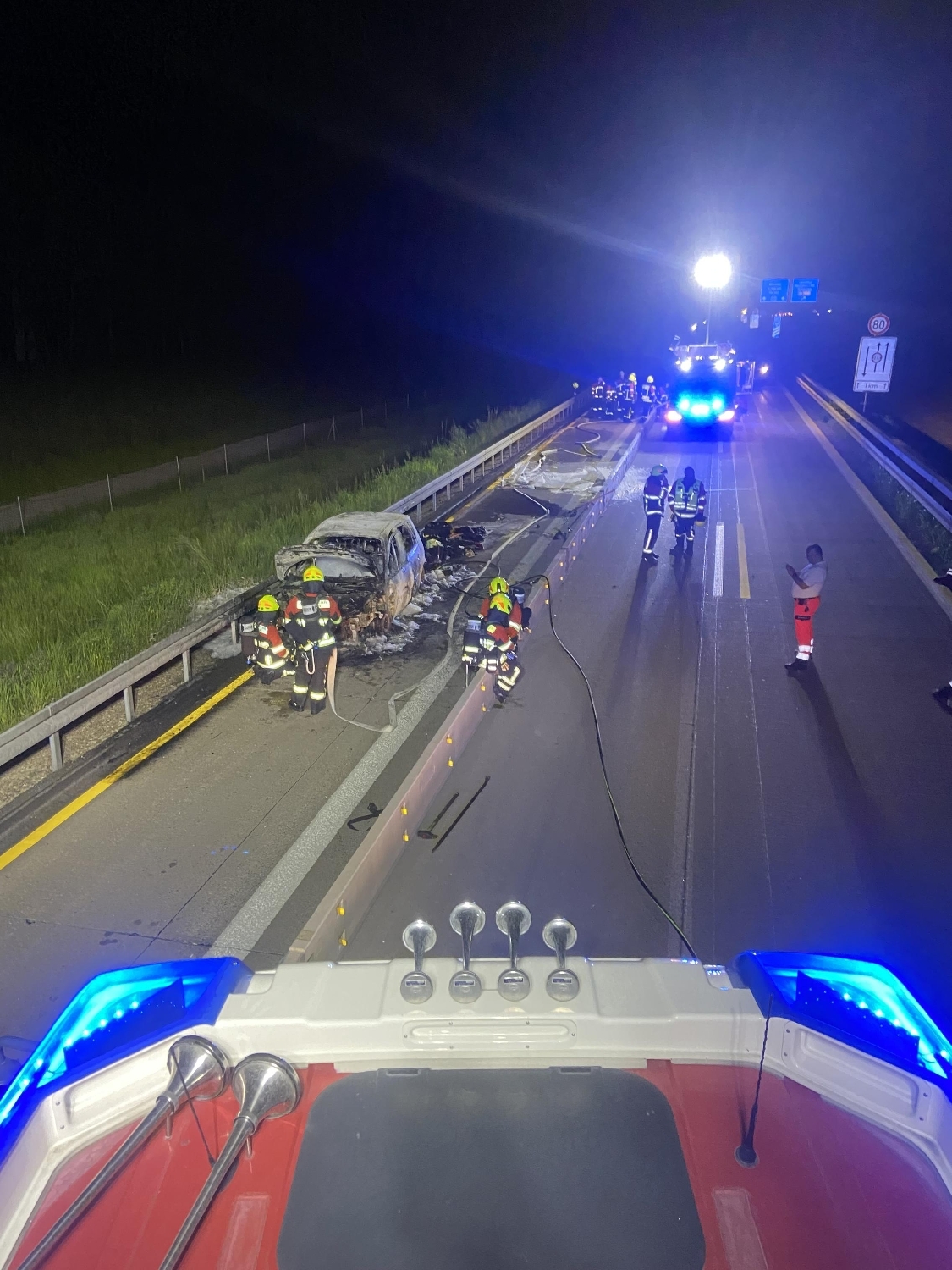 Um 21:51 Uhr wurden wir zu einem brennenden Pkw in den Baustellenbereich der A93 zwischen dem Dreieck Saalhaupt und der Anschlussstelle Bad Abbach alarmiert.