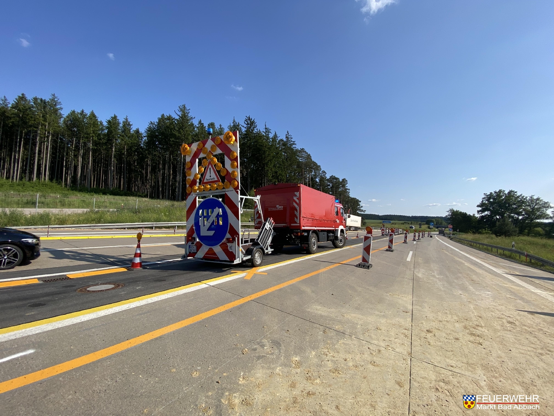 Im Baustellenbereich auf der Bundesstraße 15 Neu zwischen Schierling-Nord und dem Dreieck Saalhaupt kam es zu einem Verkehrsunfall mit einem Lkw. Die Feuerwehr Schierling ließ uns, sowie die Feuerwehr Teugn zur Vollsperrung der B15Neu in Fahrtrichtung Schierling nachalarmieren. Wir sperrten den Auffahrtsbereich von der A93 von Bad Abbach kommend ab bis der Bereitschaftsdienst der Autobahnmeisterei übernommen hat.
