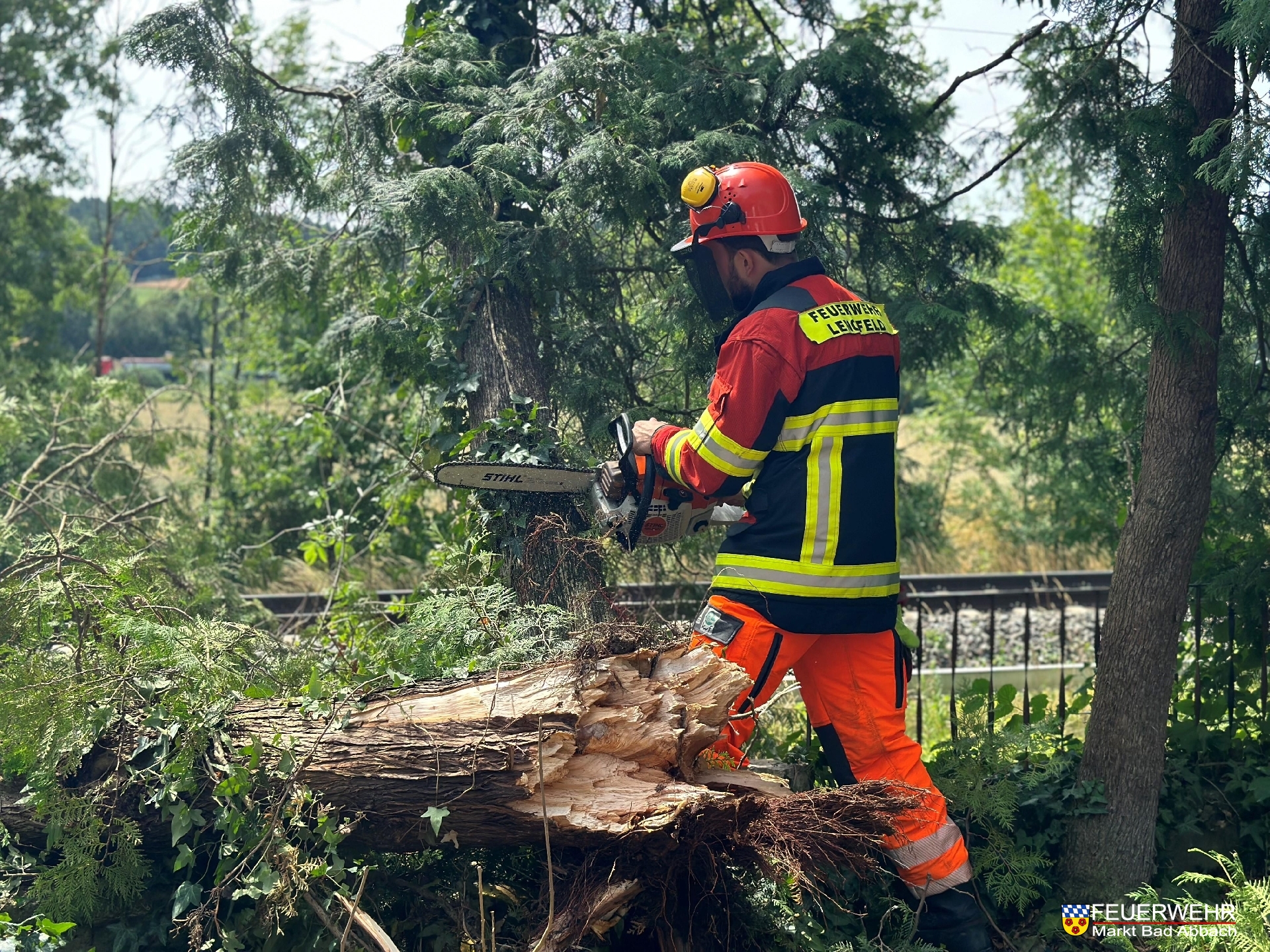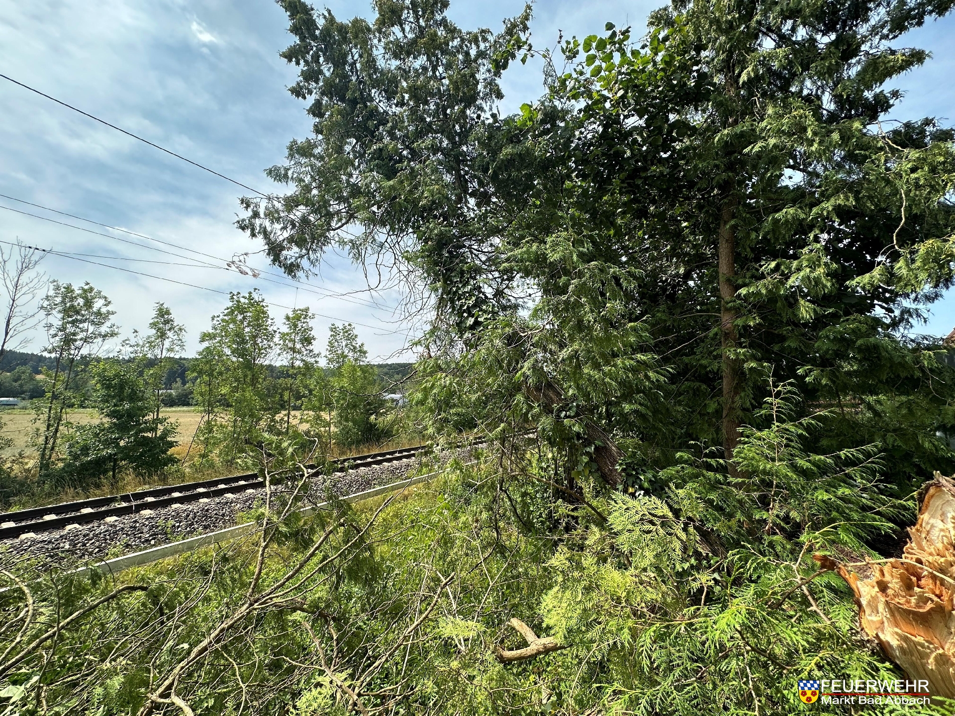 Da hierbei Gefahr in Verzug bestand, wurde eine Gleissperrung veranlasst und der Baum kontrolliert gefällt. Zwei weitere Bume, welche ebenfalls in Folge des Unwetters, einen Schaden erlitten haben, wurden ebenfalls beseitigt.