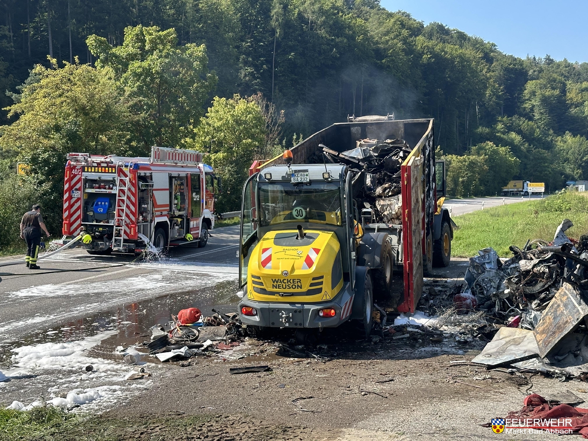 Um 9:20 Uhr wurden wir mit dem Schlagwort Brand LKW auf die Bundesstraße 16 zwischen den beiden Bad Abbacher Abfahrten alarmiert. Bereits auf der Anfahrt des Führungsdienstes konnte eine starke Rauchentwicklung von der Ferne wahrgenommen werden.