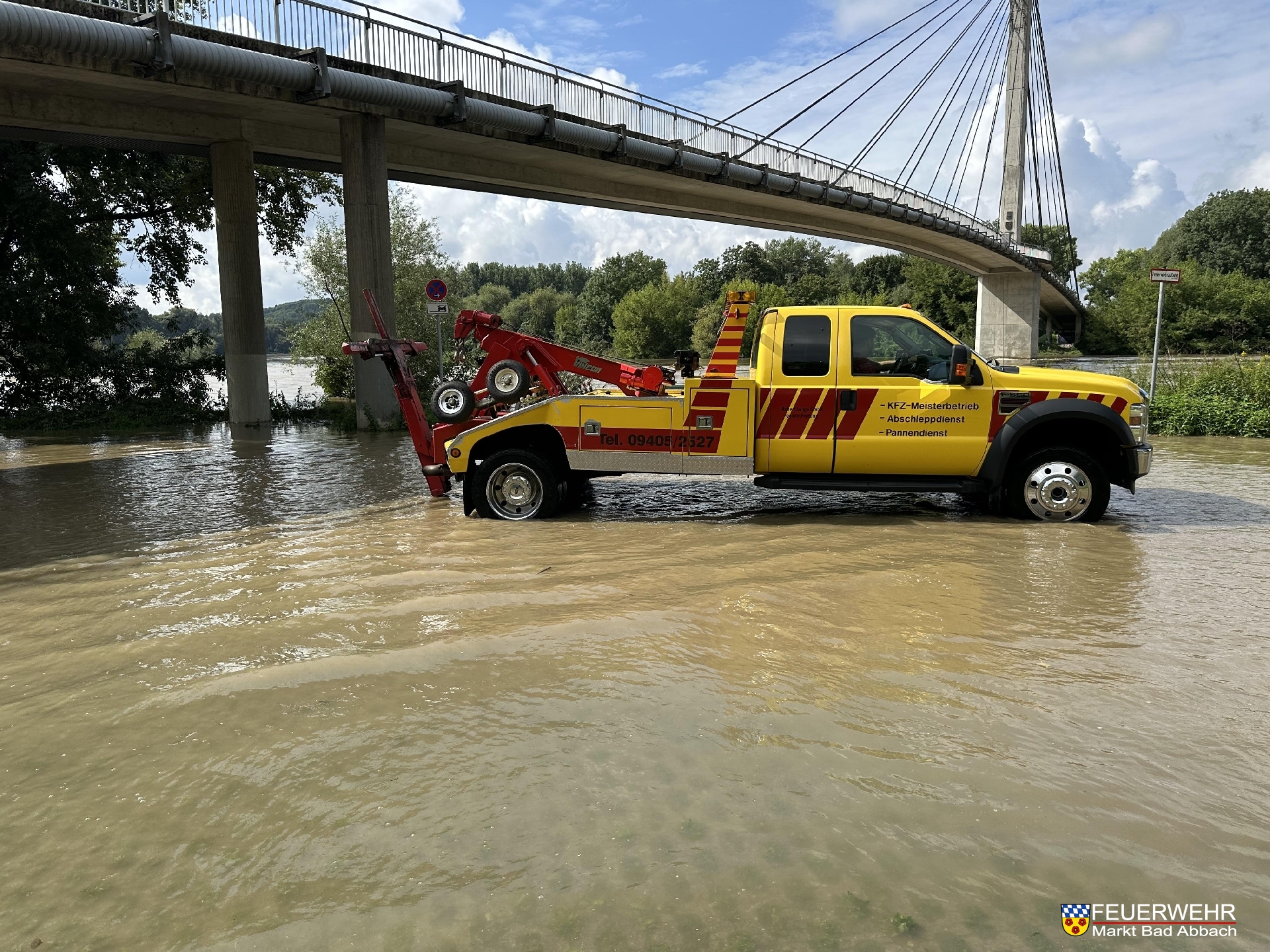 Passanten informierten das örtliche Ordnungsamt über gefährdete Fahrzeuge im Bereich des Parkplatzes Fußgängerbrücke. Die Donau trat bereits aus ihrem Ufer aus und drohte einen Pkw der Marke Audi sowie einen Fahrzeuganhänger wegzuschwemmen.