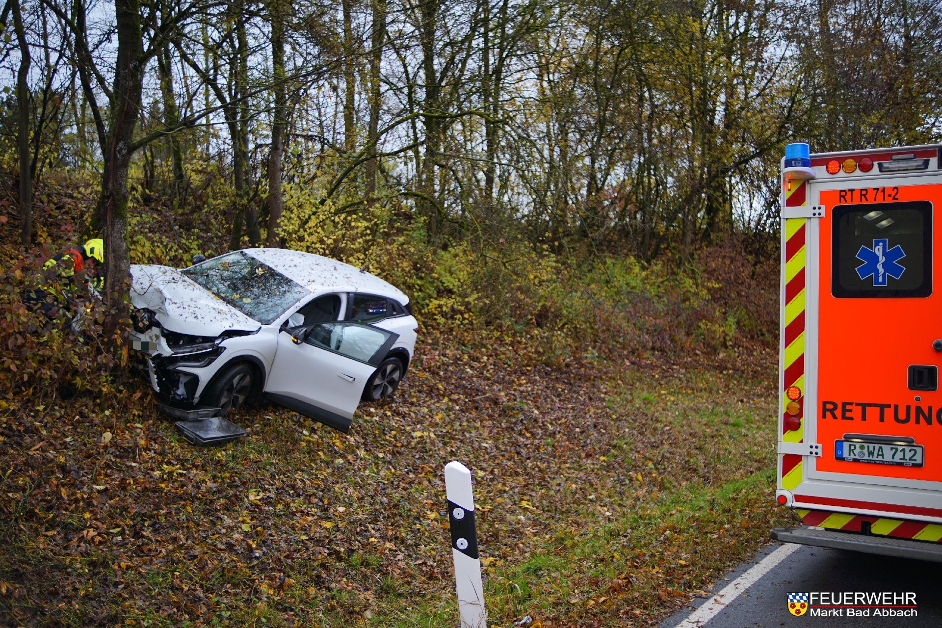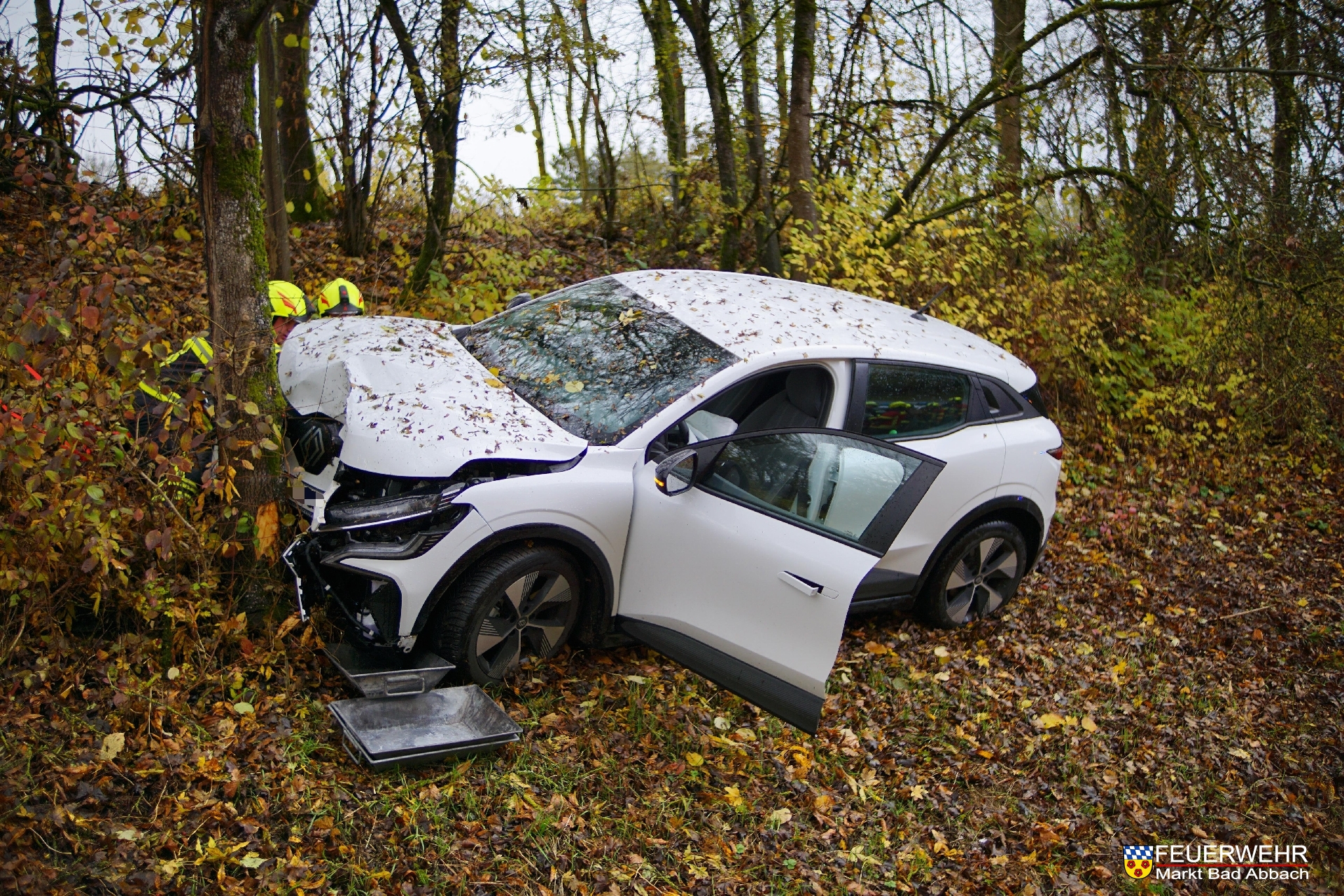 Auf der Auffahrt zur B16 kam aus bisher ungeklärter Ursache ein Pkw alleinbeteiligt von der Fahrbahn ab und kollidierte mit einem Baum.