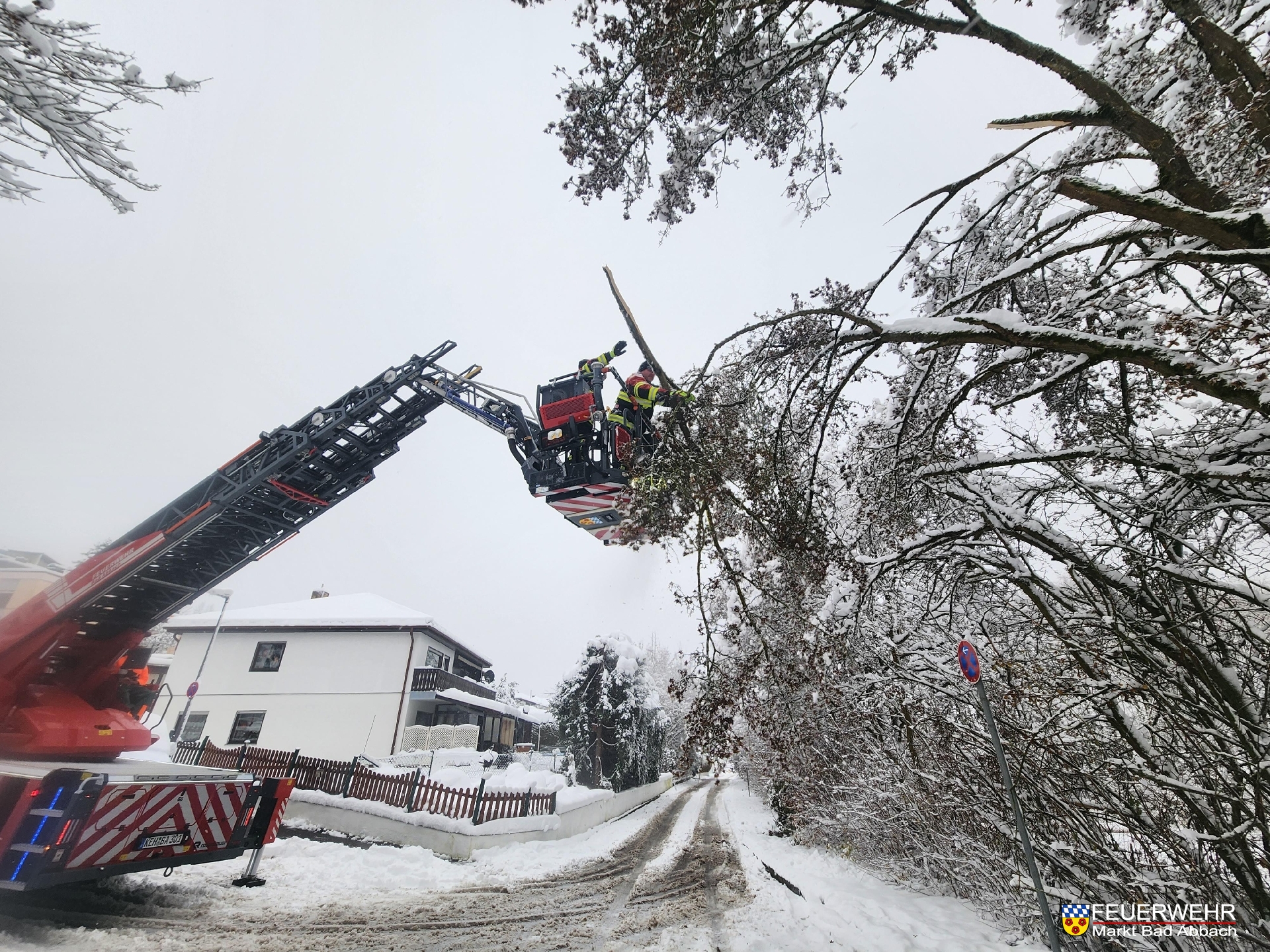 Durch eine aufmerksame Anwohnerin wurden wir in die Bürgermeister-Windl-Straße gerufen, hier mussten ebenfalls mehrere große abgebrochene Äste entfernt werden.