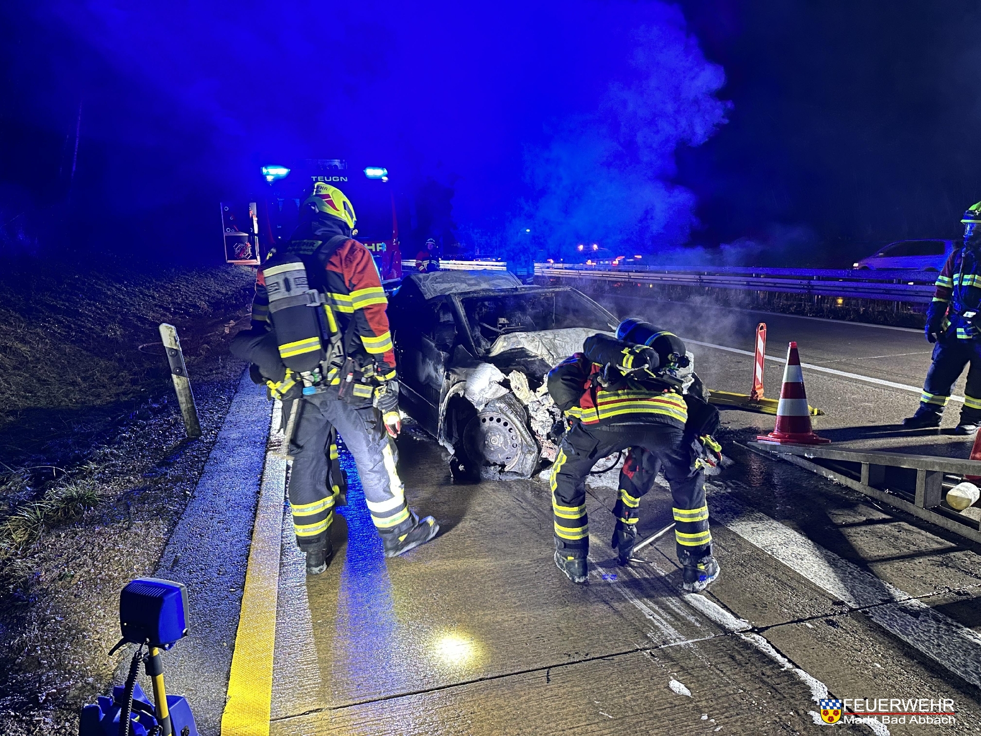 Um 4:18 Uhr wurden wir gemeinsam mit der Feuerwehr Teugn auf die Autobahn 93 zu einem brennenden Pkw zwischen dem Dreieck Saalhaupt und der Anschlussstelle Bad Abbach alarmiert.