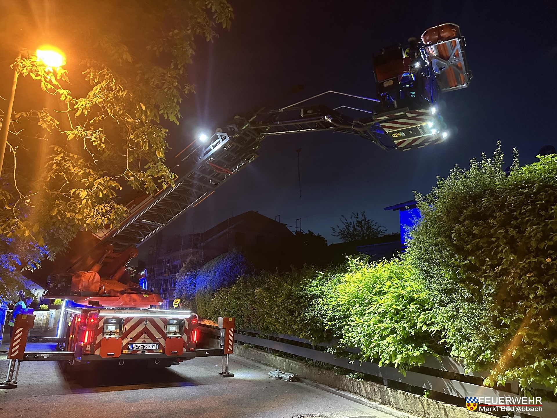 Um 21:38 Uhr wurden wir durch die Leitstelle Regensburg zu einer Personenrettung über die Drehleiter in den Pentlinger Reiterweg angefordert.