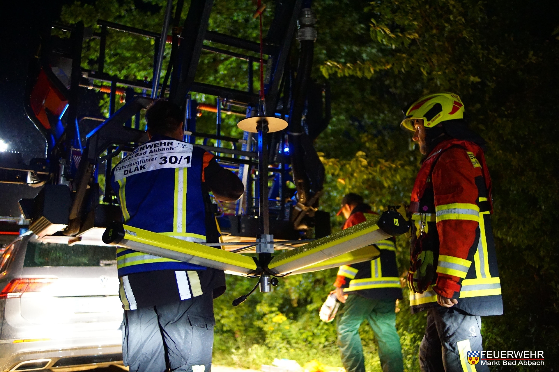 Es folgte der Nachalarm einer Vielzahl von Feuerwehren mit Booten und zur Verkehrslenkung, sowie die Einteilung der Einsatzstelle in zwei Abschnitte. Mit Einbruch der Dunkelheit wurden die beiden Uferseiten großflächig ausgeleuchtet, um die weiteren Dokumentations-, Erkundungs- und Bergungsmaßnahmen zu unterstützen.