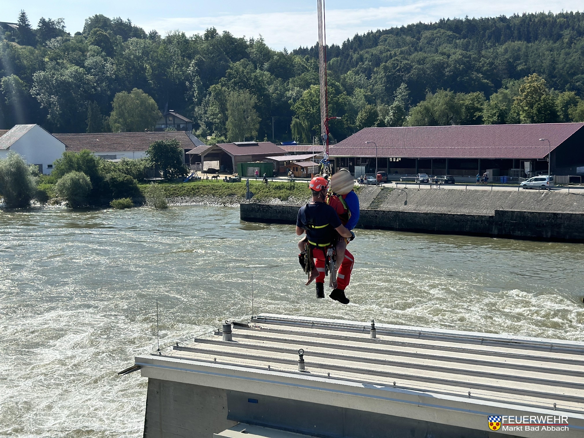 Zur Absicherung im Bereich unterhalb der Wehranlage, wurde die Feuerwehr Matting mit einem weiteren Mehrzweckboot über die Leitstelle Regensburg nachalarmiert.